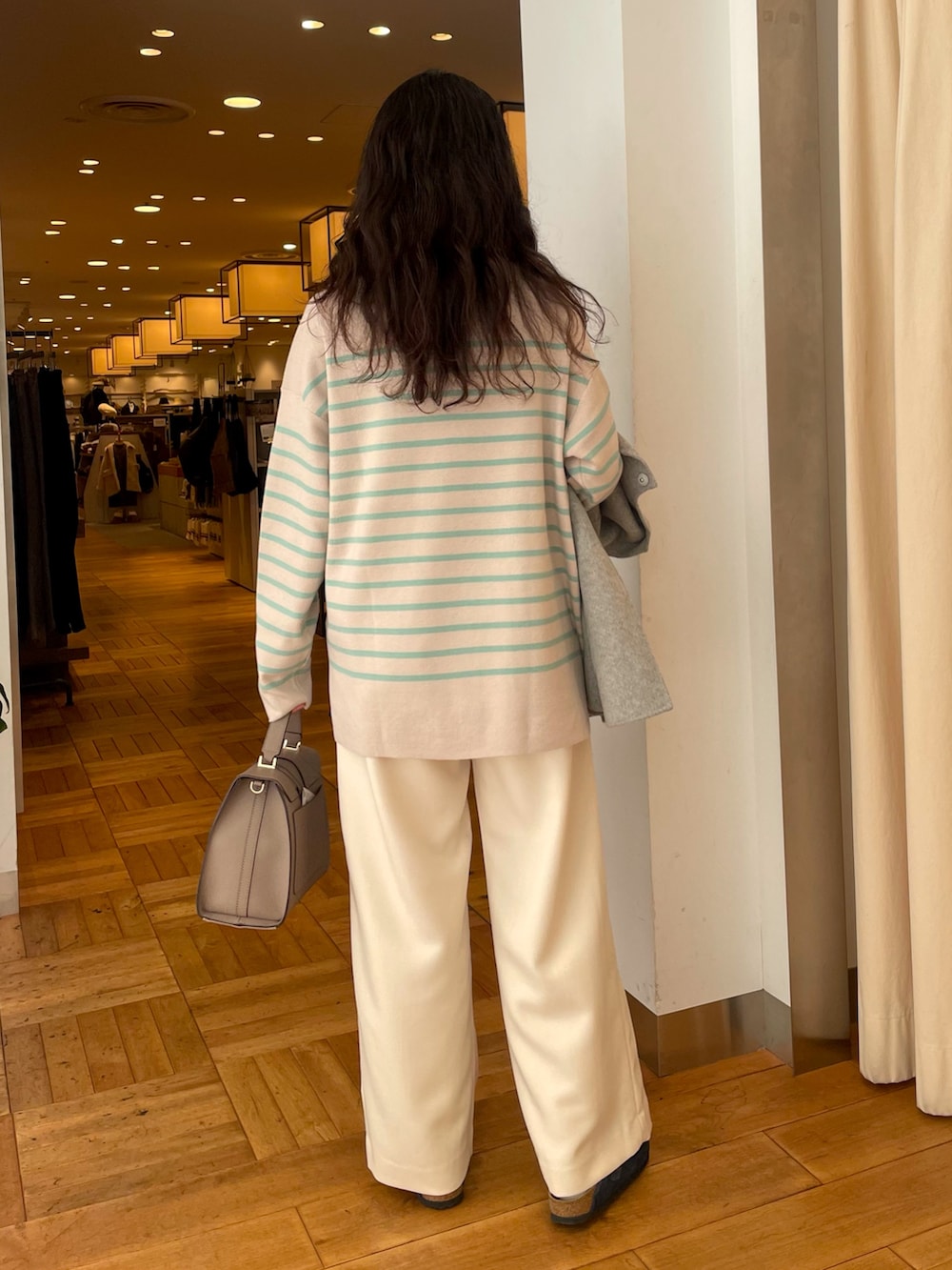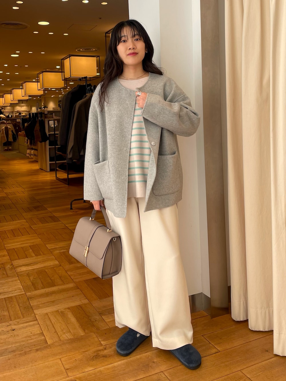 中に着たボーダーニットはもちもち素材で可愛くて気に入ってます!