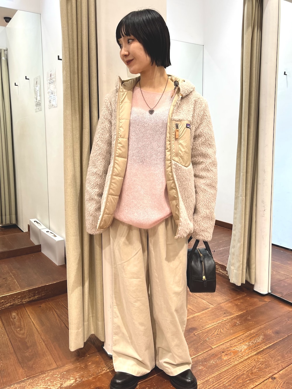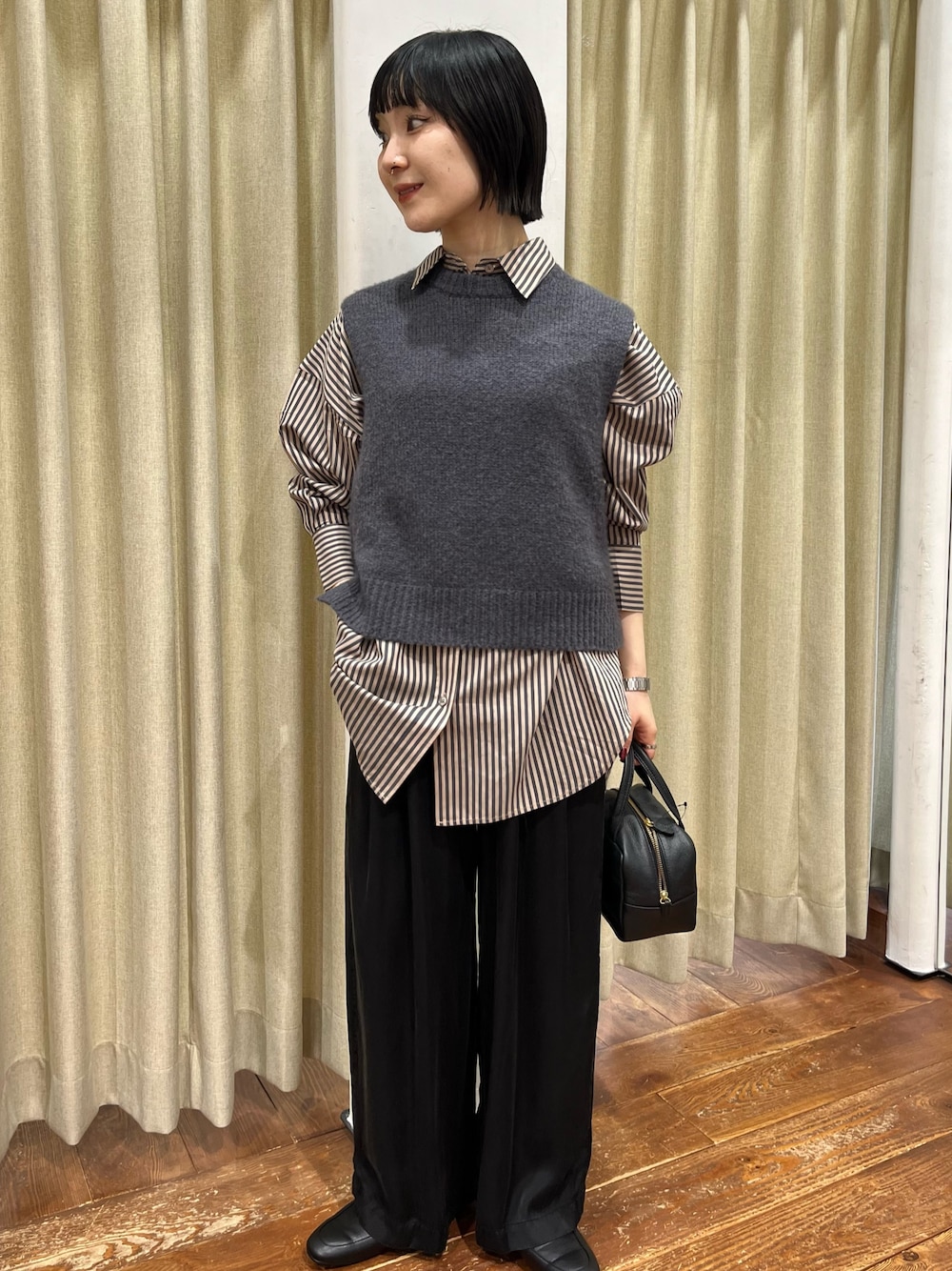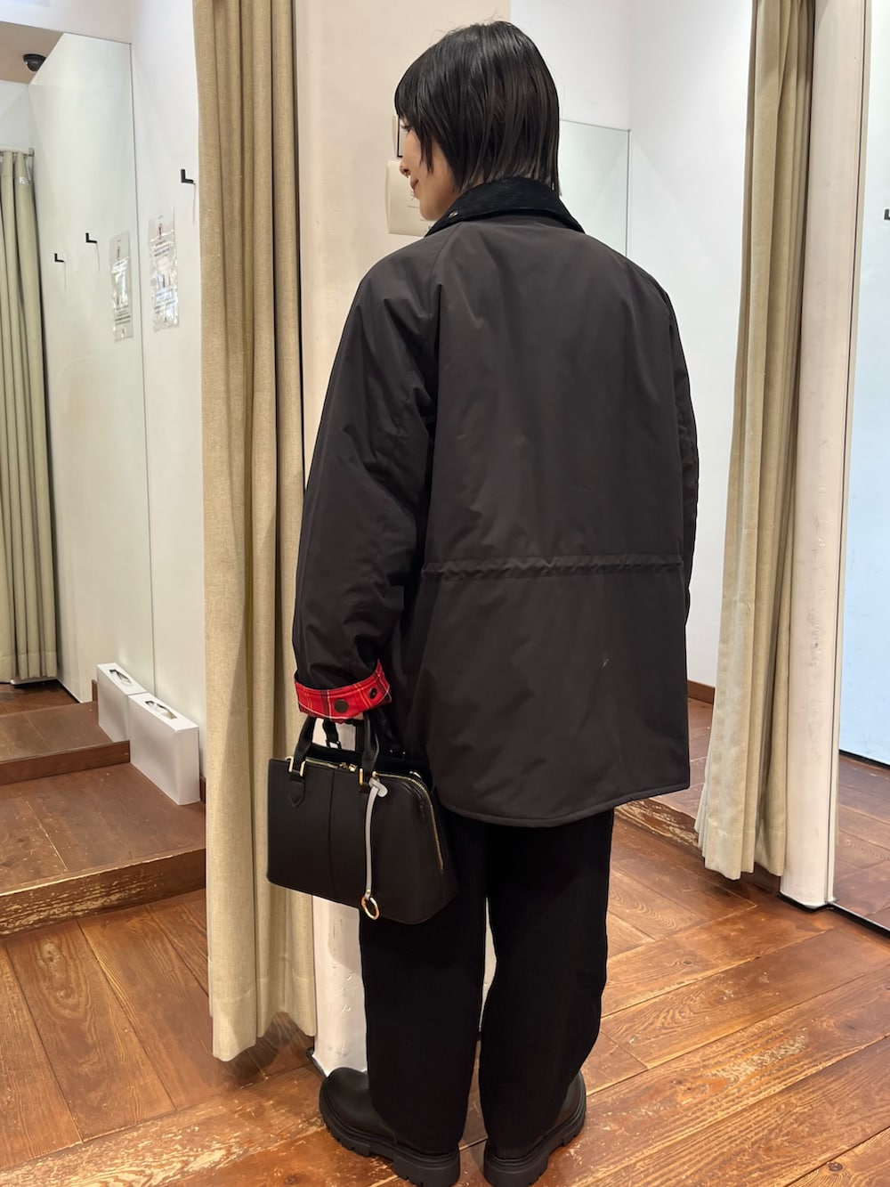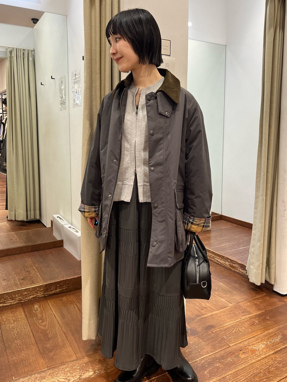 厚みがありますが、軽い風合いでゆったり綺麗なラインを残しつつスッキリ見えます。
