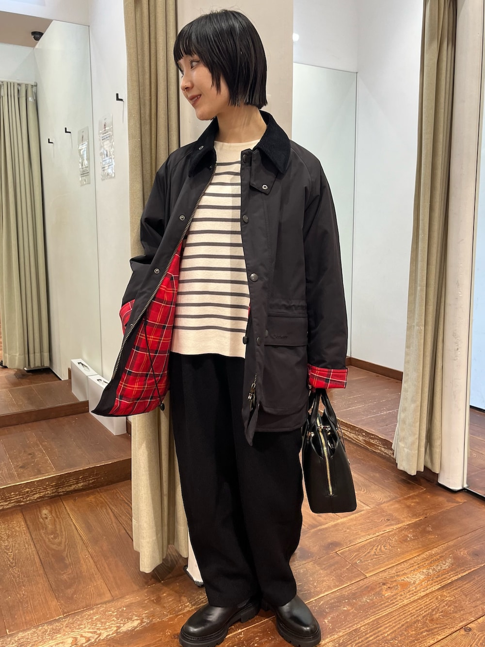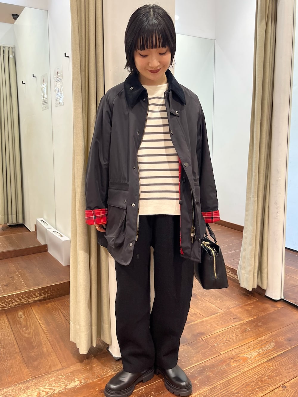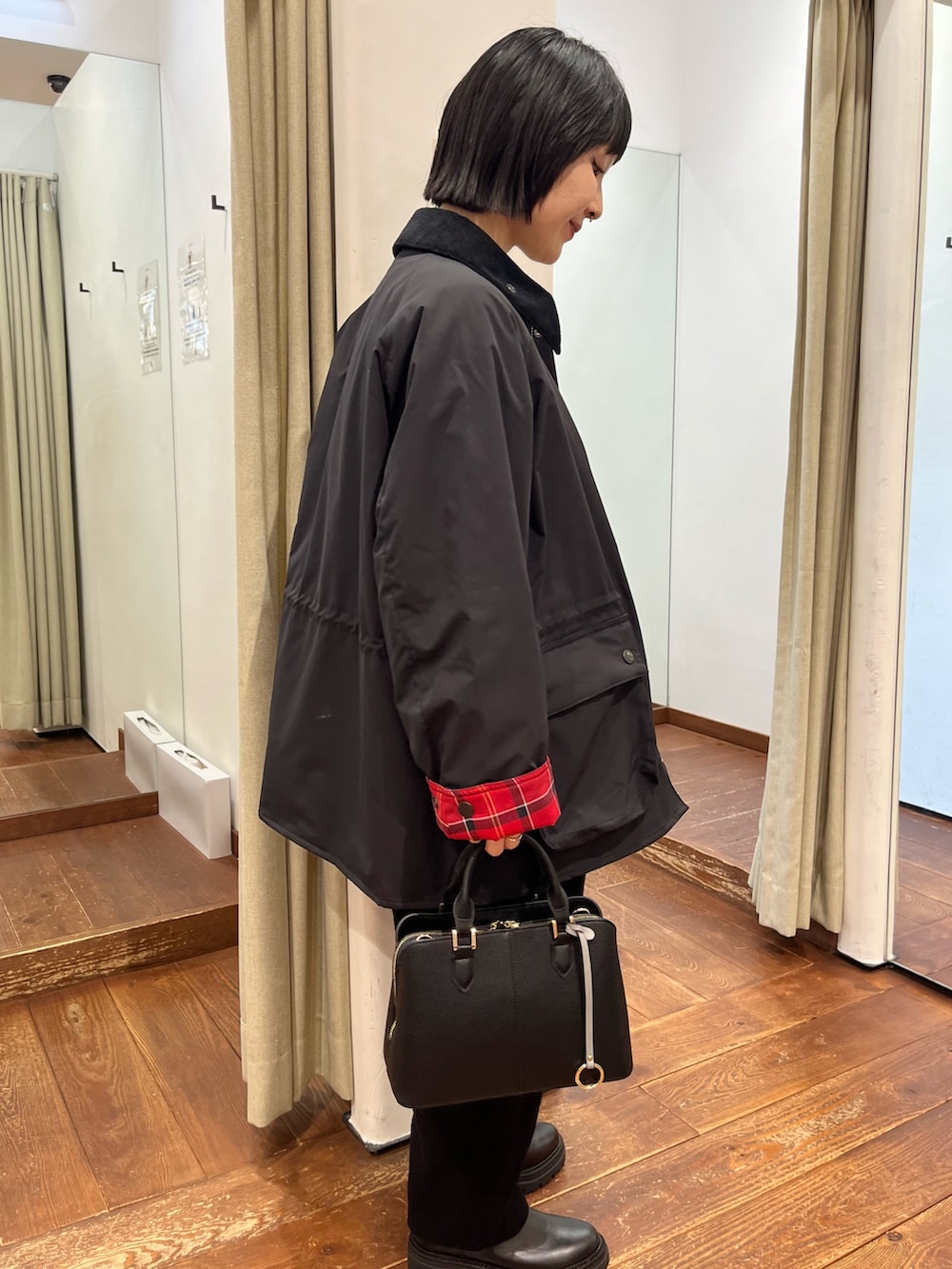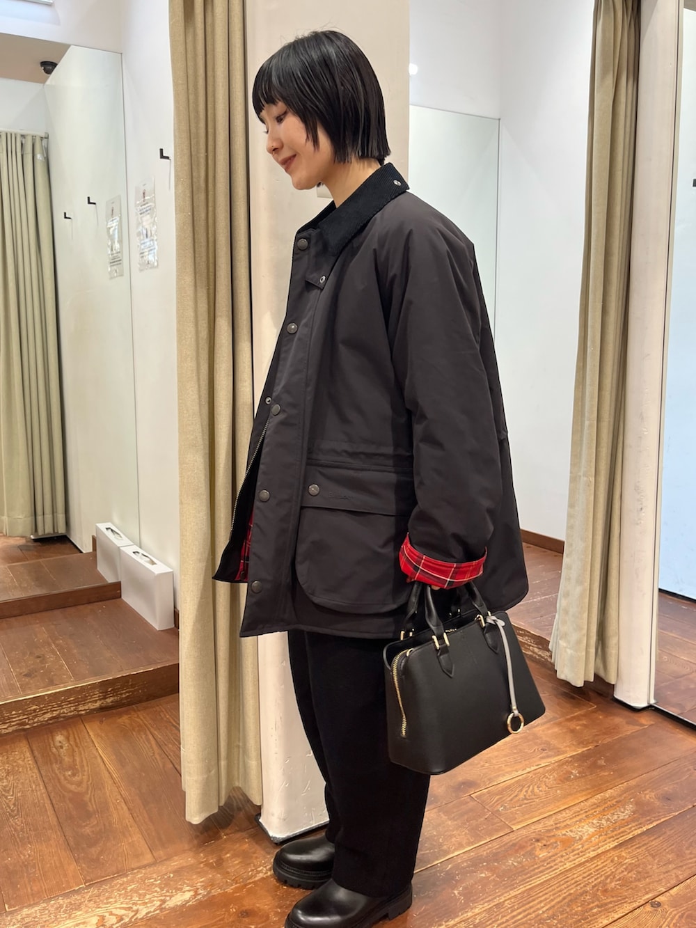 厚みがありますが、軽い風合いでゆったり綺麗なラインを残しつつスッキリ見えます。