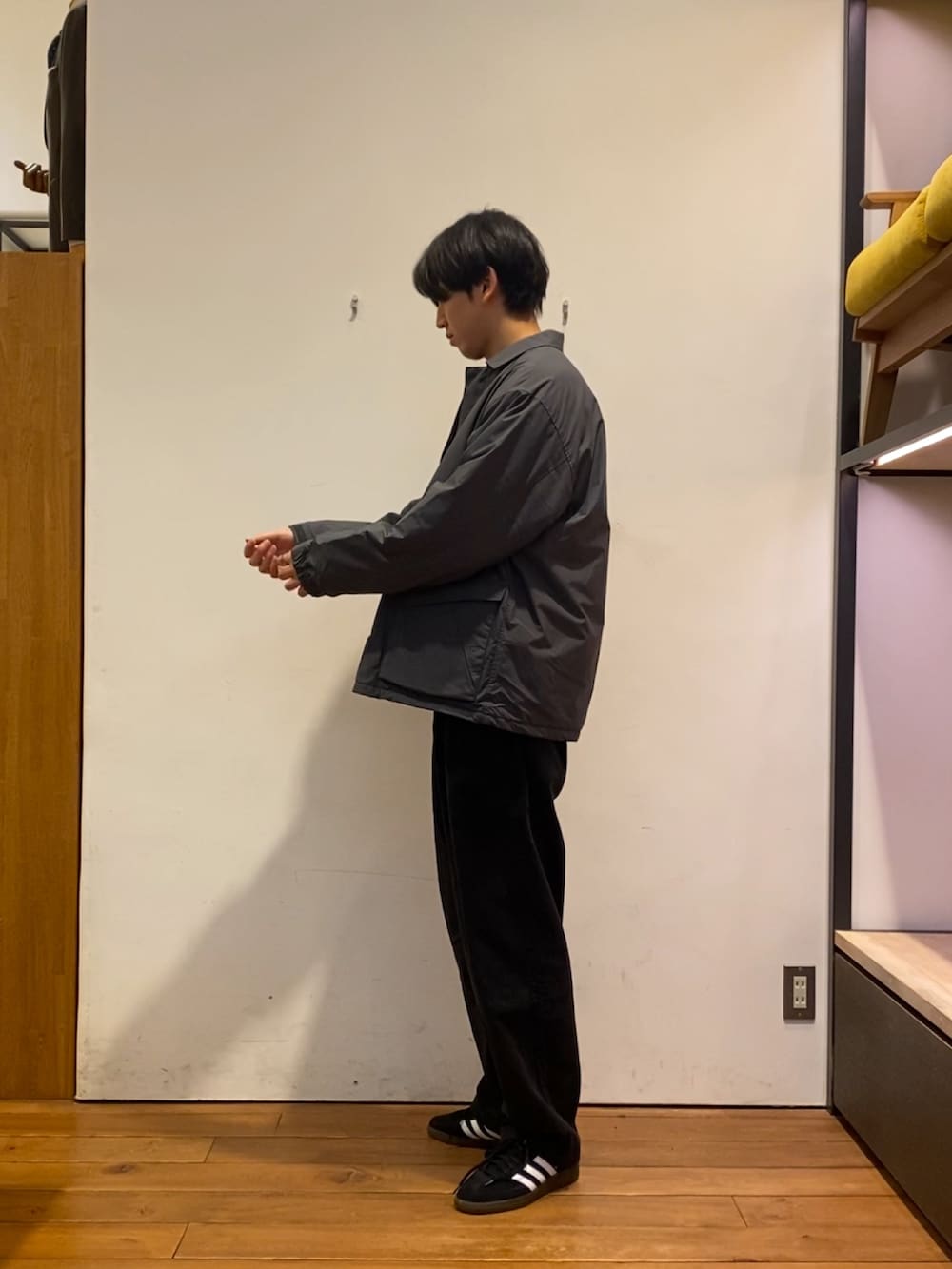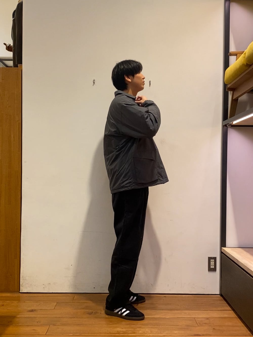 ゆったりとしたサイズ感なのでスウェットやニットの上に重ね着しやすく便利に使えます!