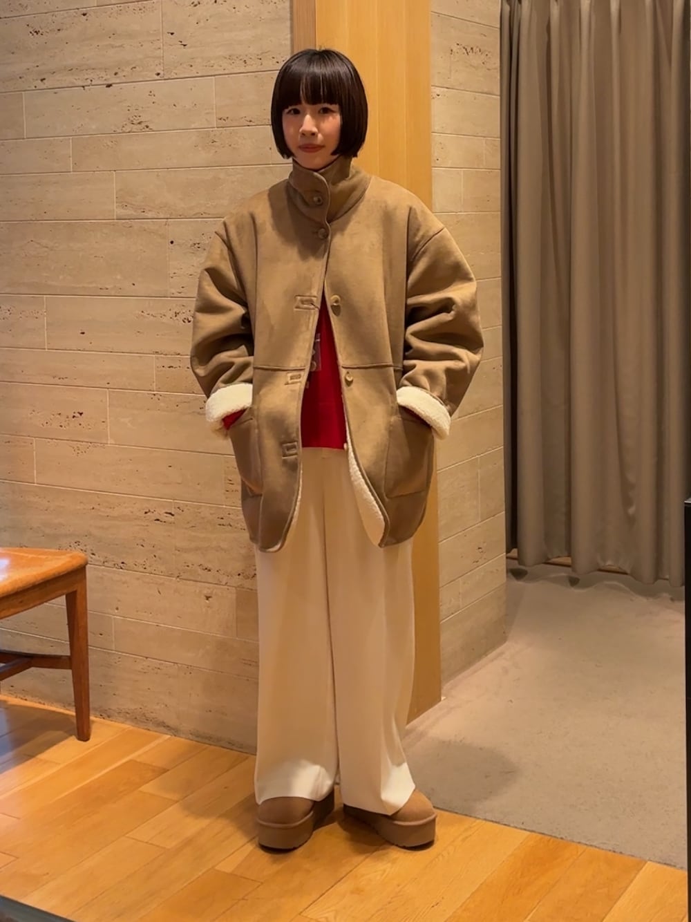 合わせるアイテムはモール生地ニットにワイドテーパードシルエットのスラックス!