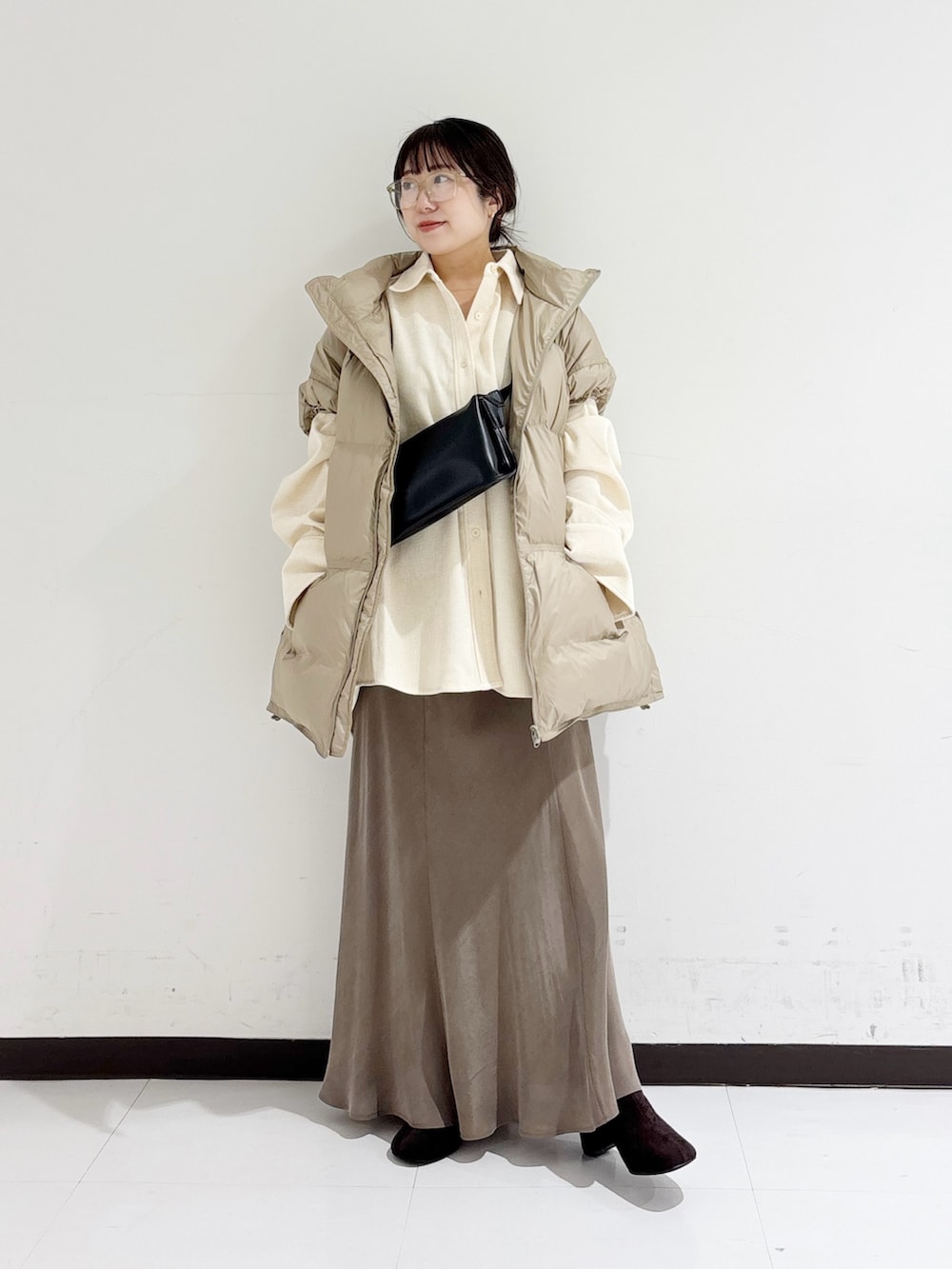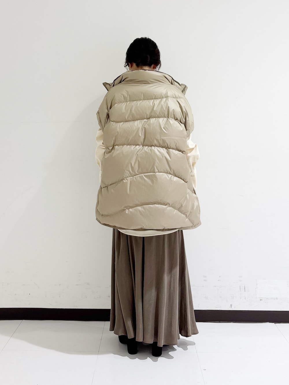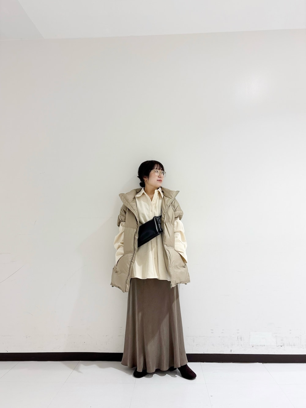 ボリューム満点のダウンベストとスッキリ細見えのスカートとのバランスが好きです😊💓