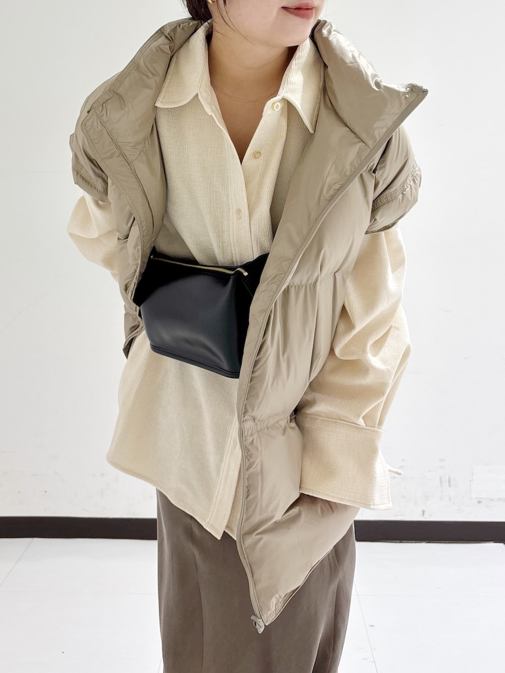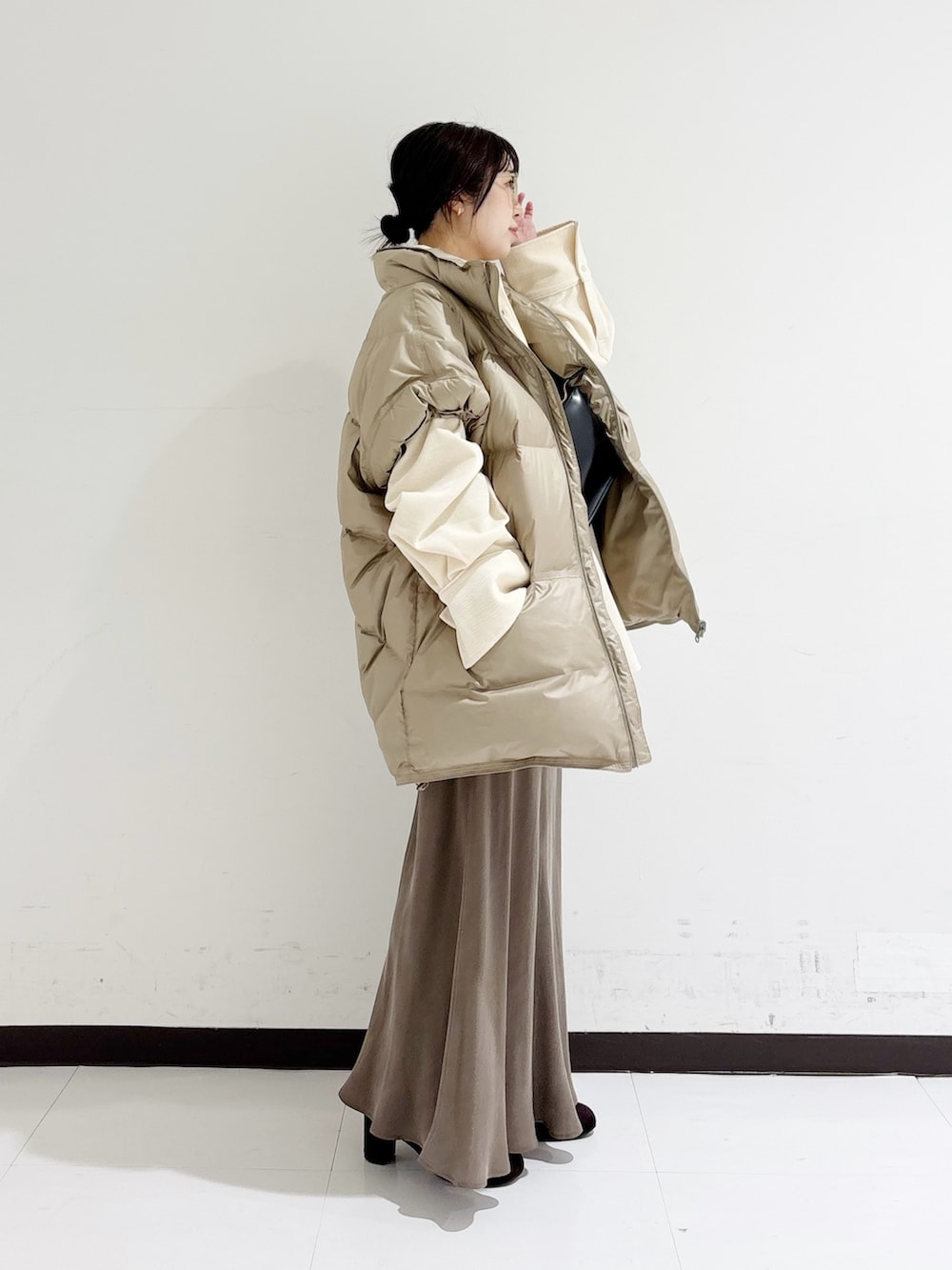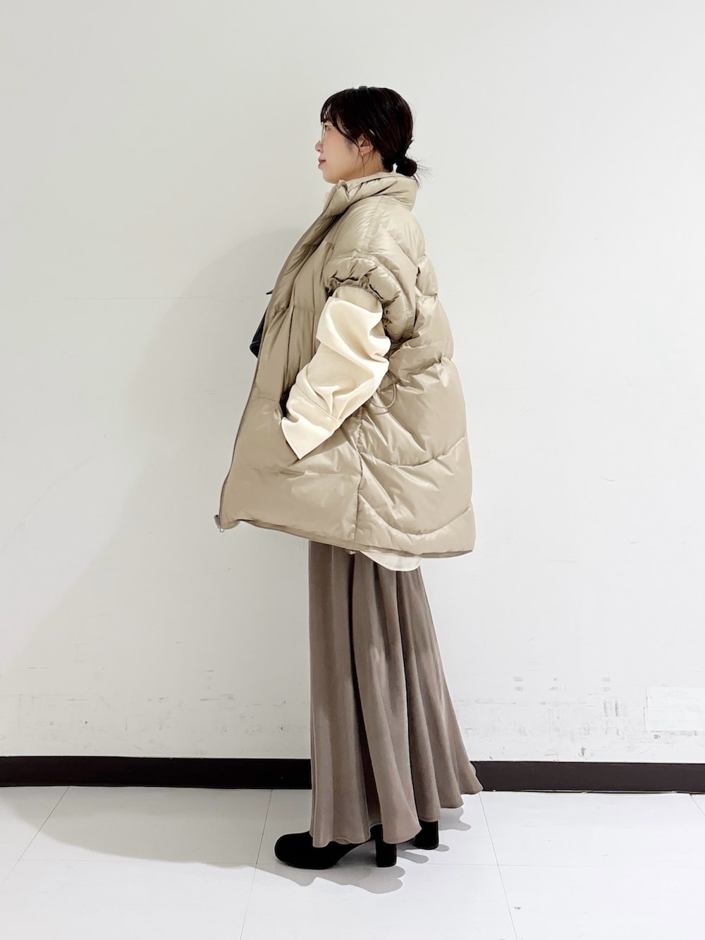 ボリューム満点のダウンベストとスッキリ細見えのスカートとのバランスが好きです😊💓
