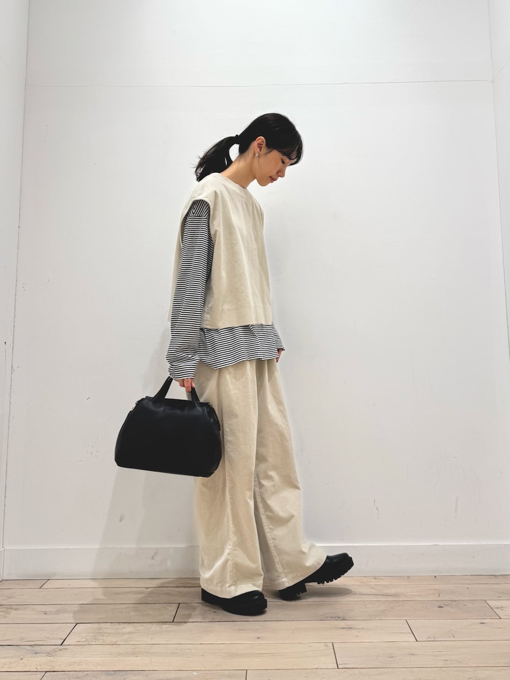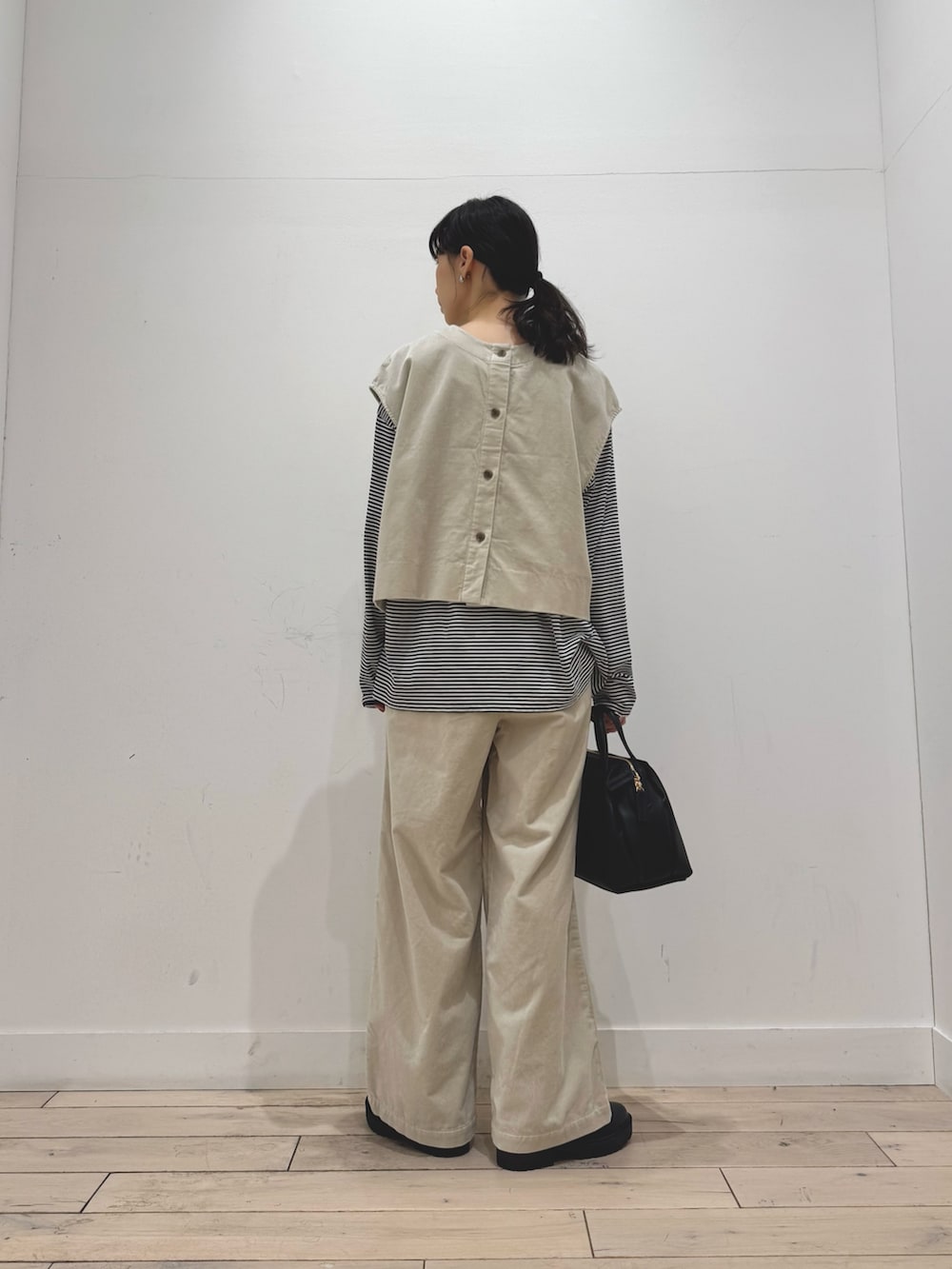 ベストは短めなのでインナーを入れてスタイルアップしても、ゆるっと出して重ね着感を出してもどちらの着方もかわいいです!