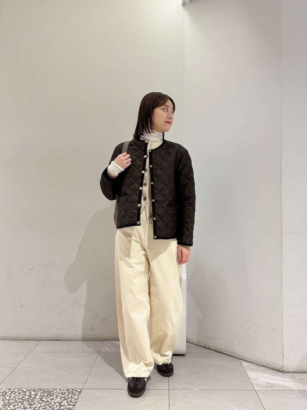 ショート丈のキルティングジャケットは上品見えするアイテム◎