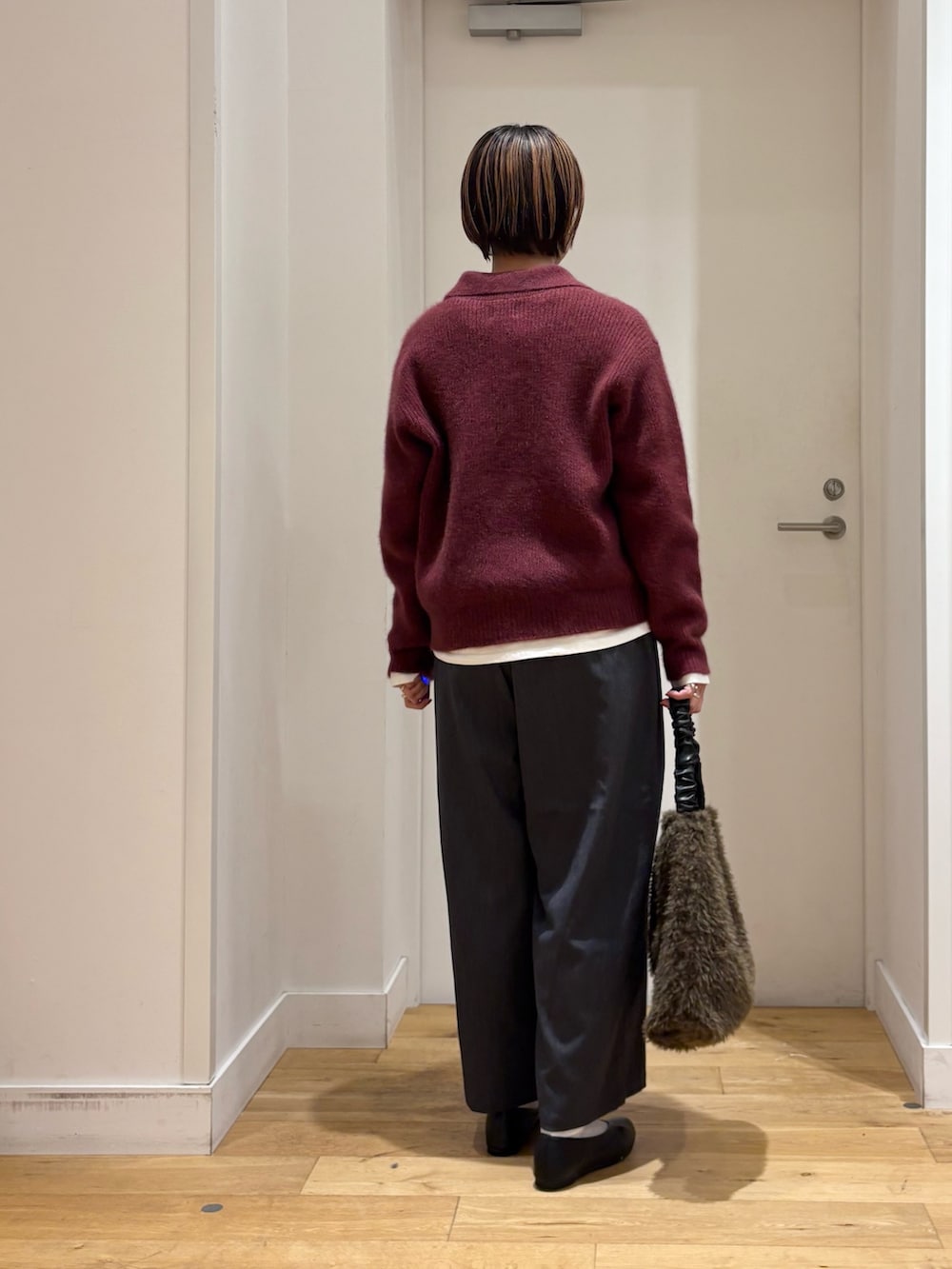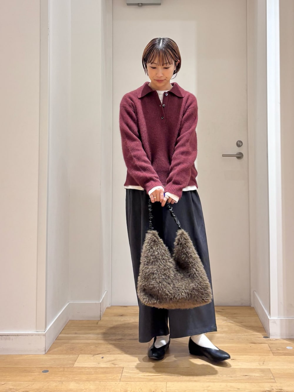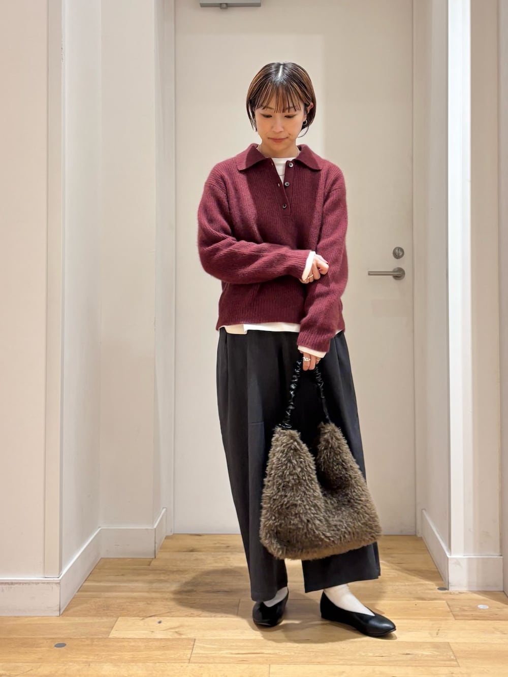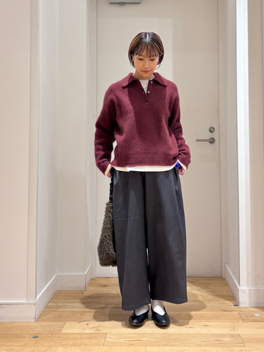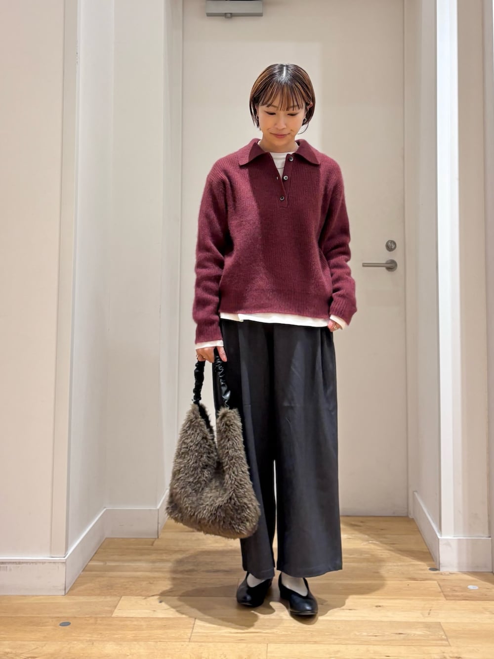 襟付きのニットは、ふわふわとした風合いが魅力的!