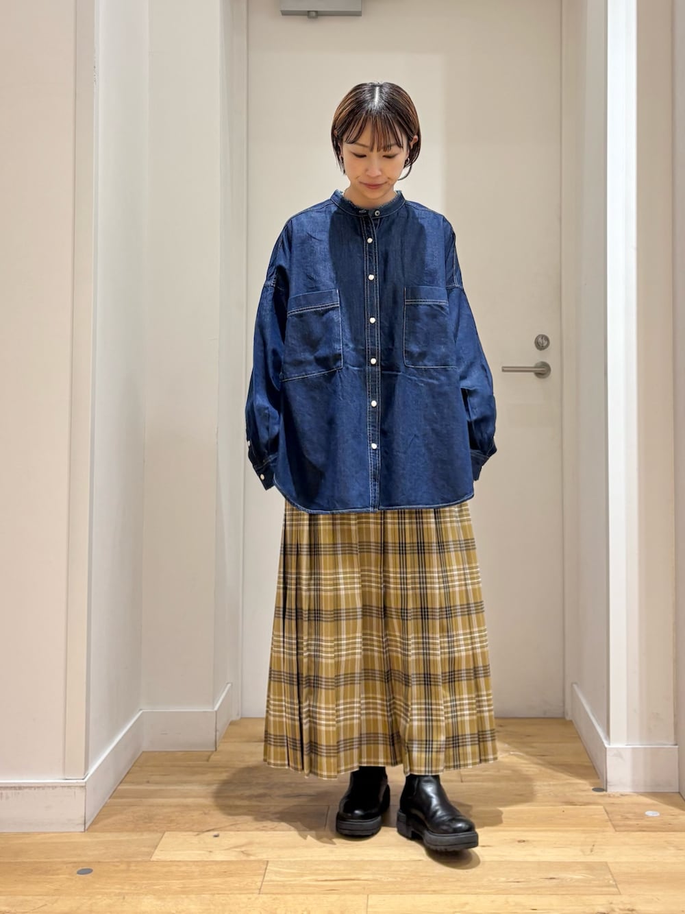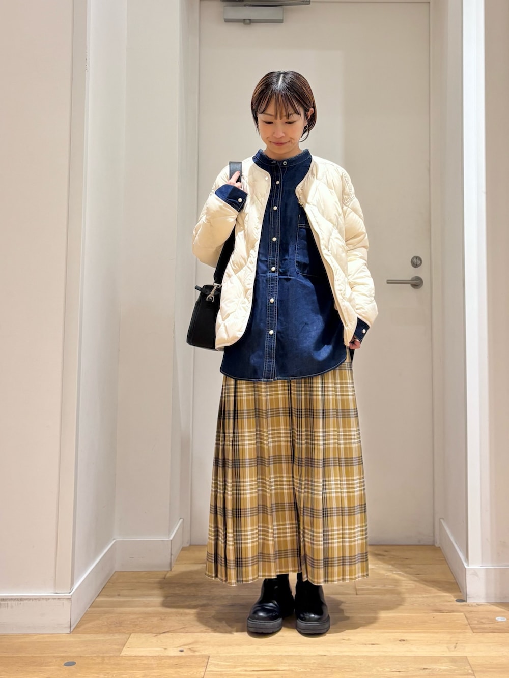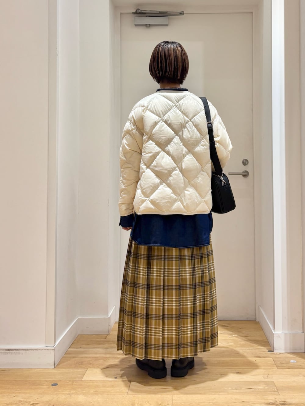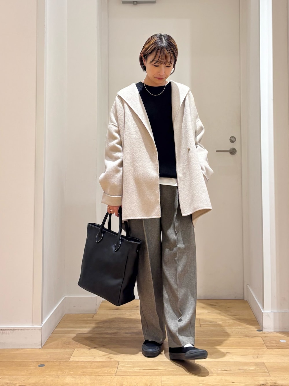 ノーカラーなので、タートルネックやフードアイテムとの相性も抜群ですよ◎