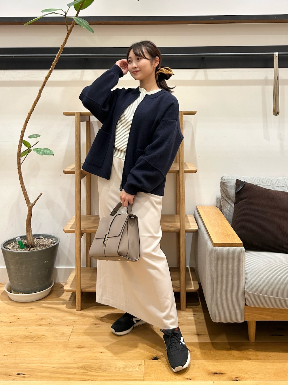 ショート丈なのでハイウエストのパンツやスカートとも相性抜群です。