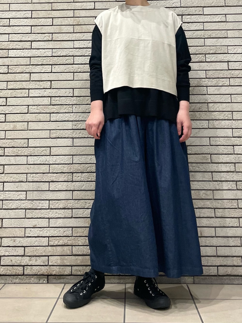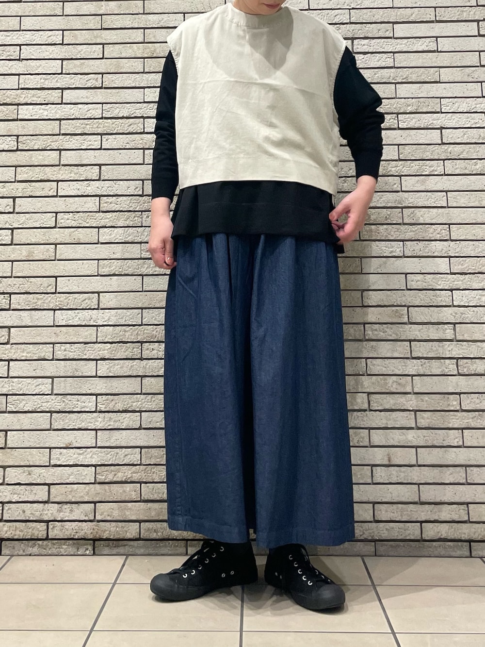 デニムタックワイドパンツ
