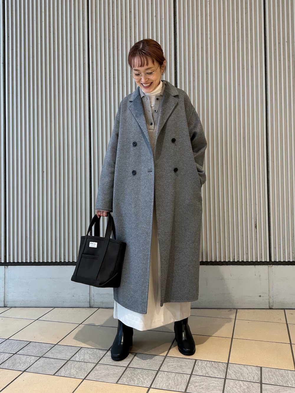 ワントーンコーデに、グレーのロングコートを合わせてみました!