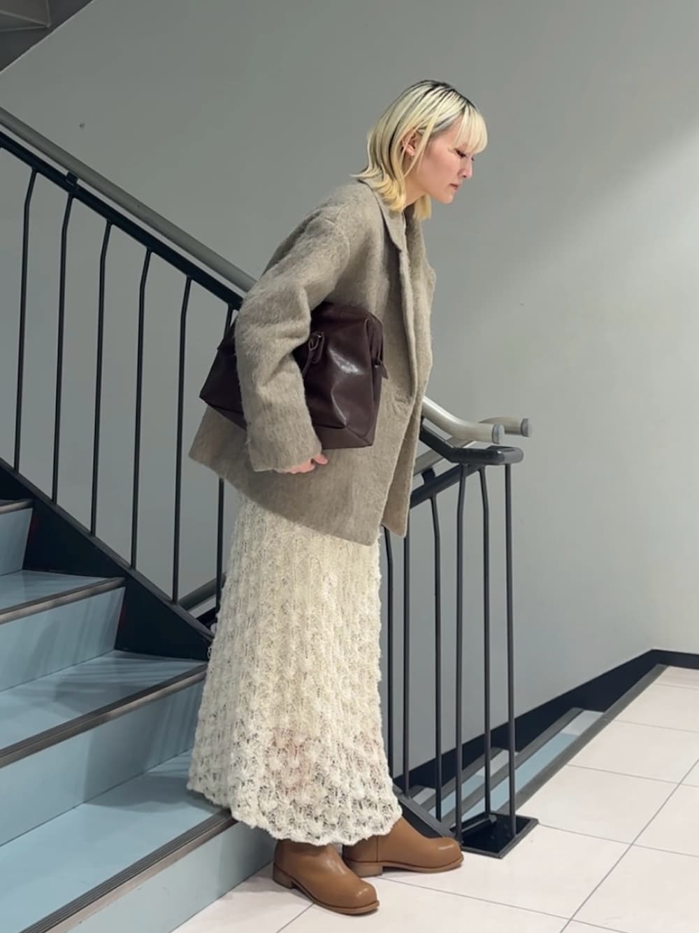 アウターはスカートに合わせてMOCHAでワントーンを意識😎