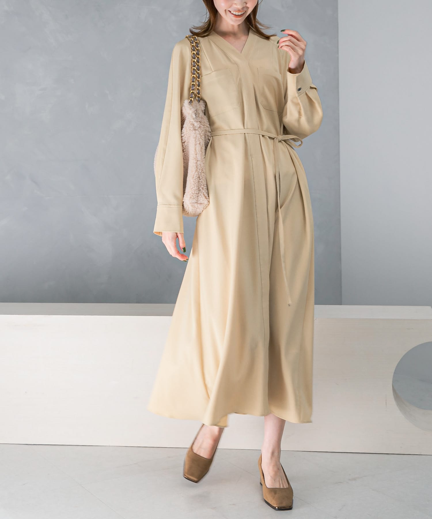 ポケットデザインVネックワンピース
