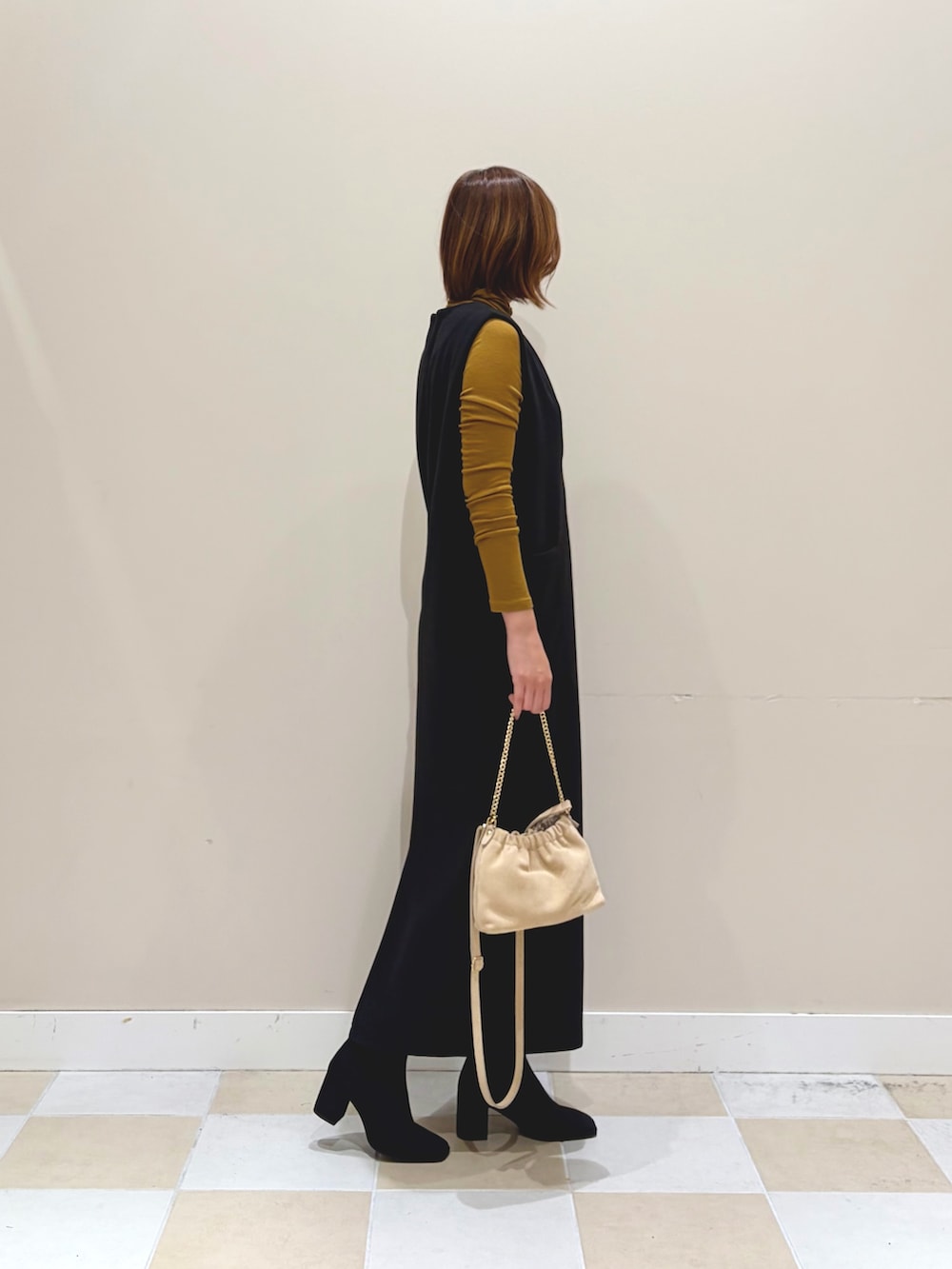 肉厚な素材で秋冬おすすめのジャンパースカートです。インナーや足元を替えて、きれいめにもカジュアルにも活躍するアイテムです!