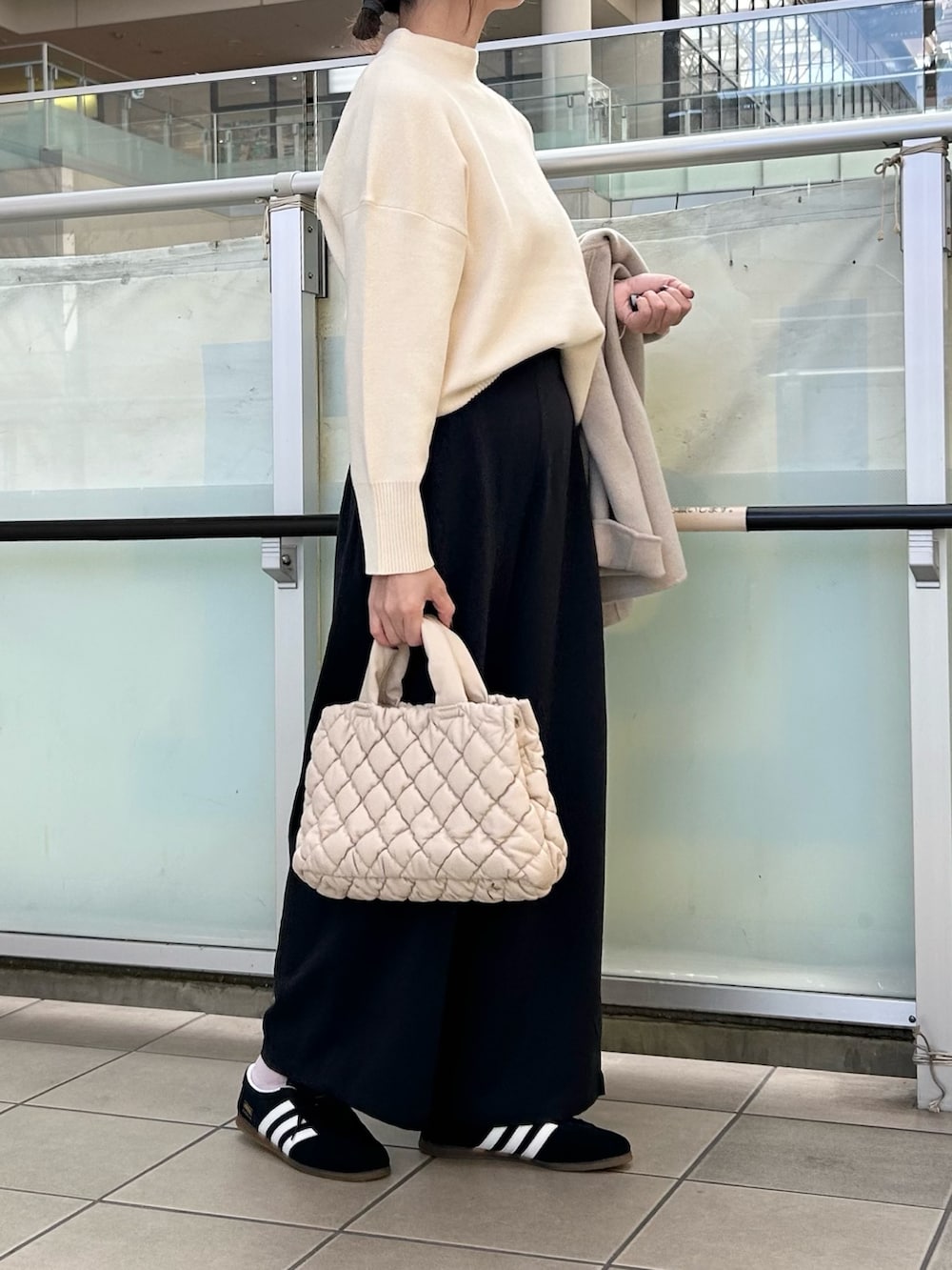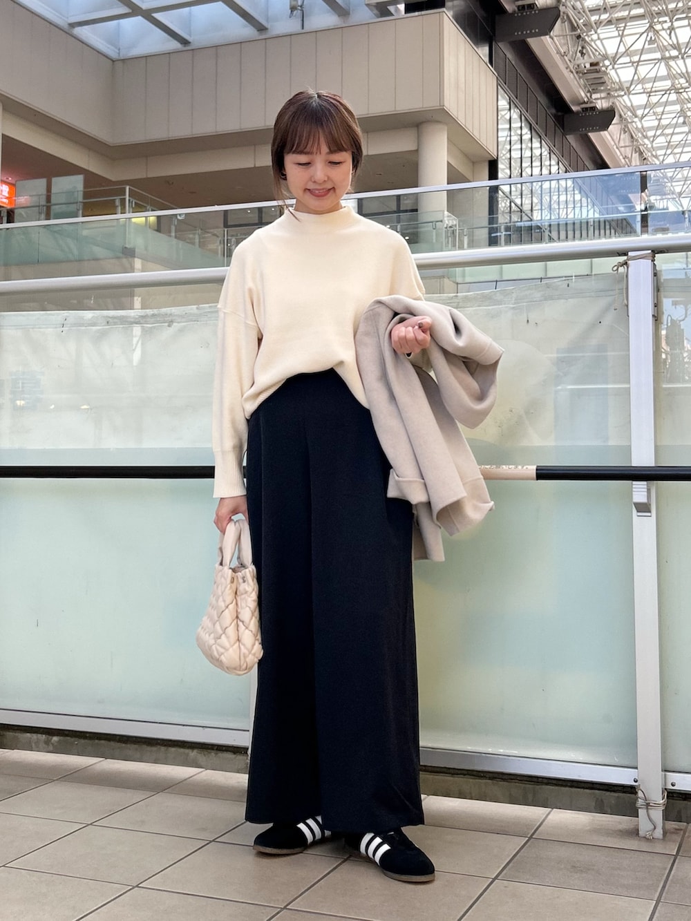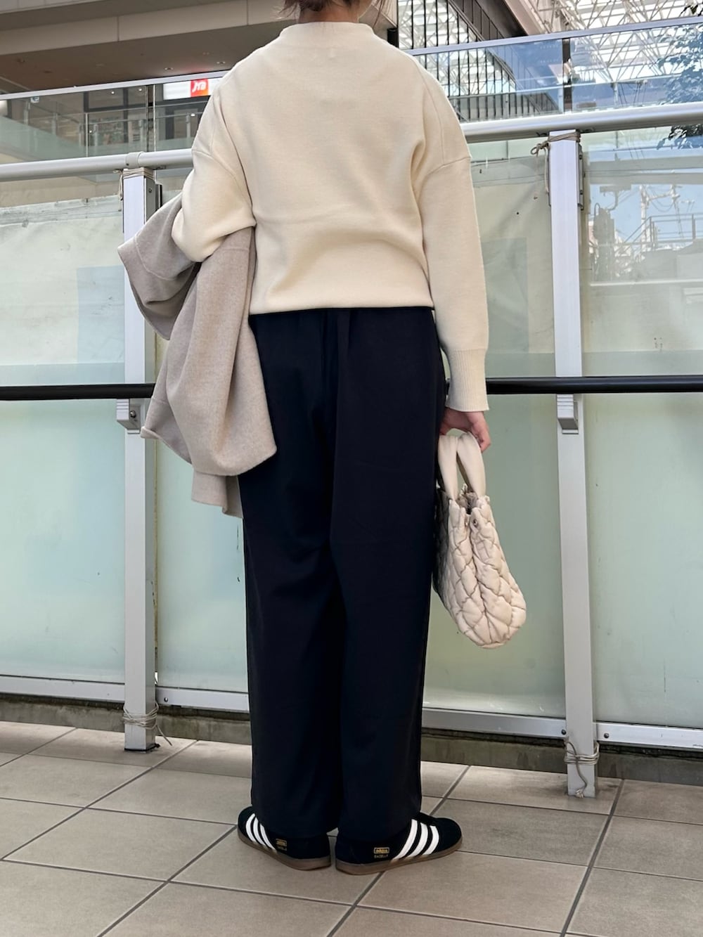 中に着たニットもシンプルでオンオフ使えます。チクチク感がないニットなので首まわりも気になりません。
