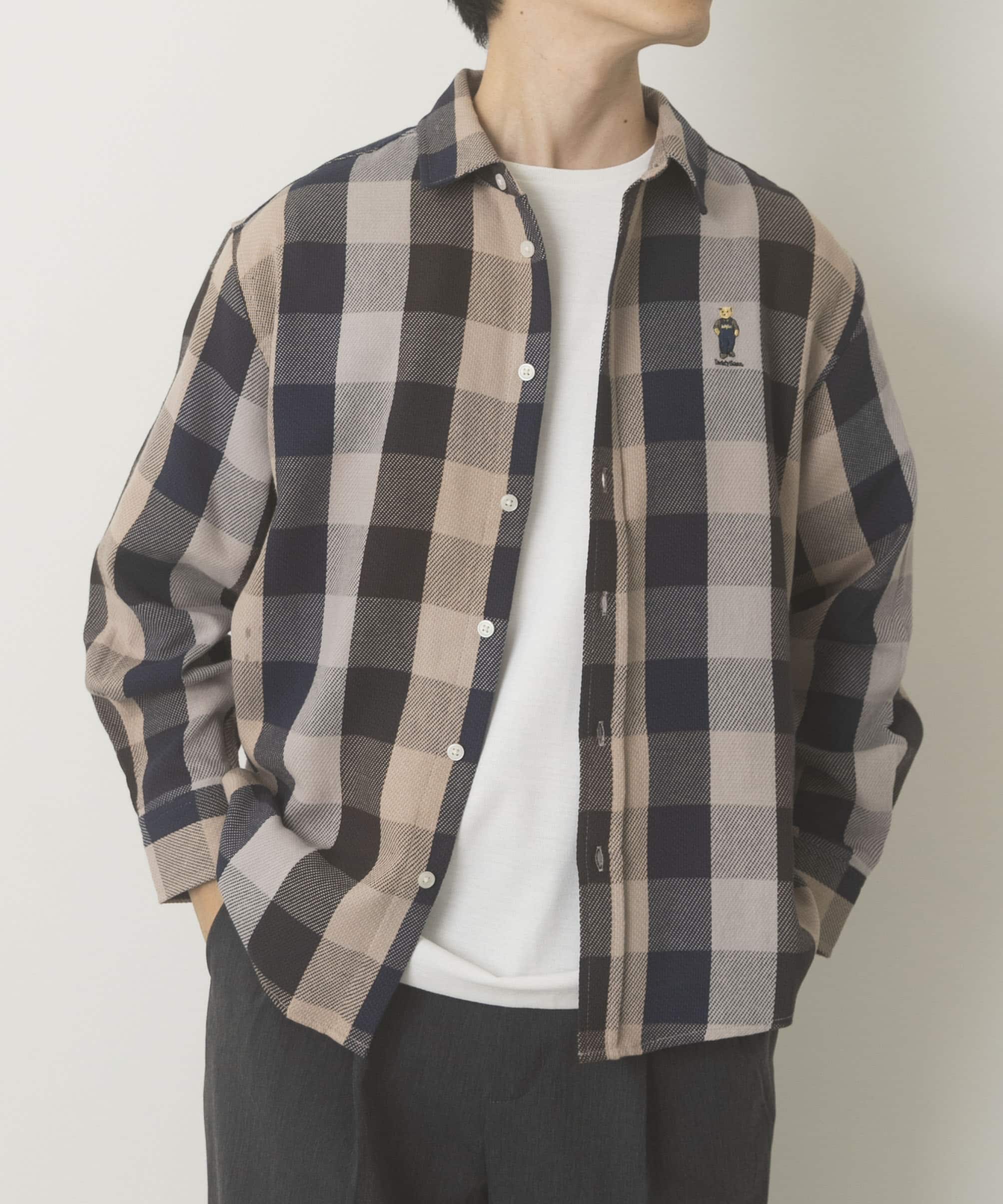 TeddyBearワンポイントチェックネルシャツ