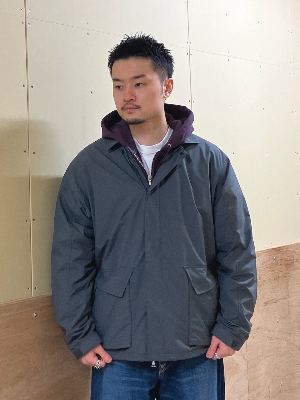 Marmot別注のジャケット、かなり軽くて暖かいのでおすすめです。中に着る物次第で春頃まで使えると思います!