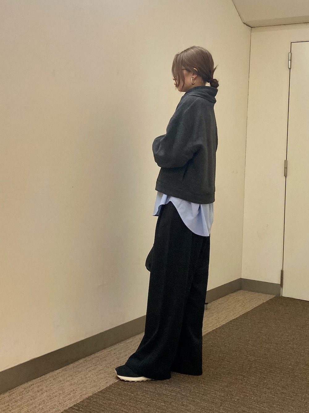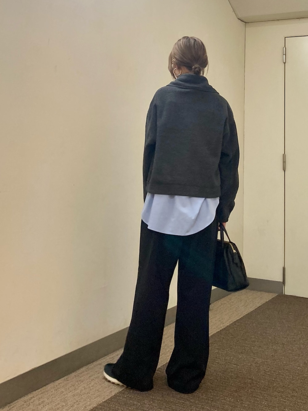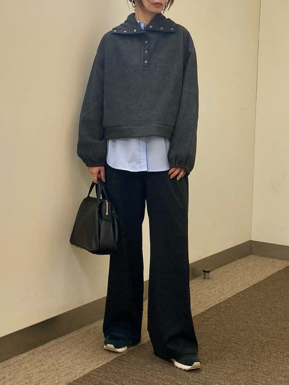 フリース生地のトップスにシャツをレイヤードしてきれい目パンツで合わせてみました〜