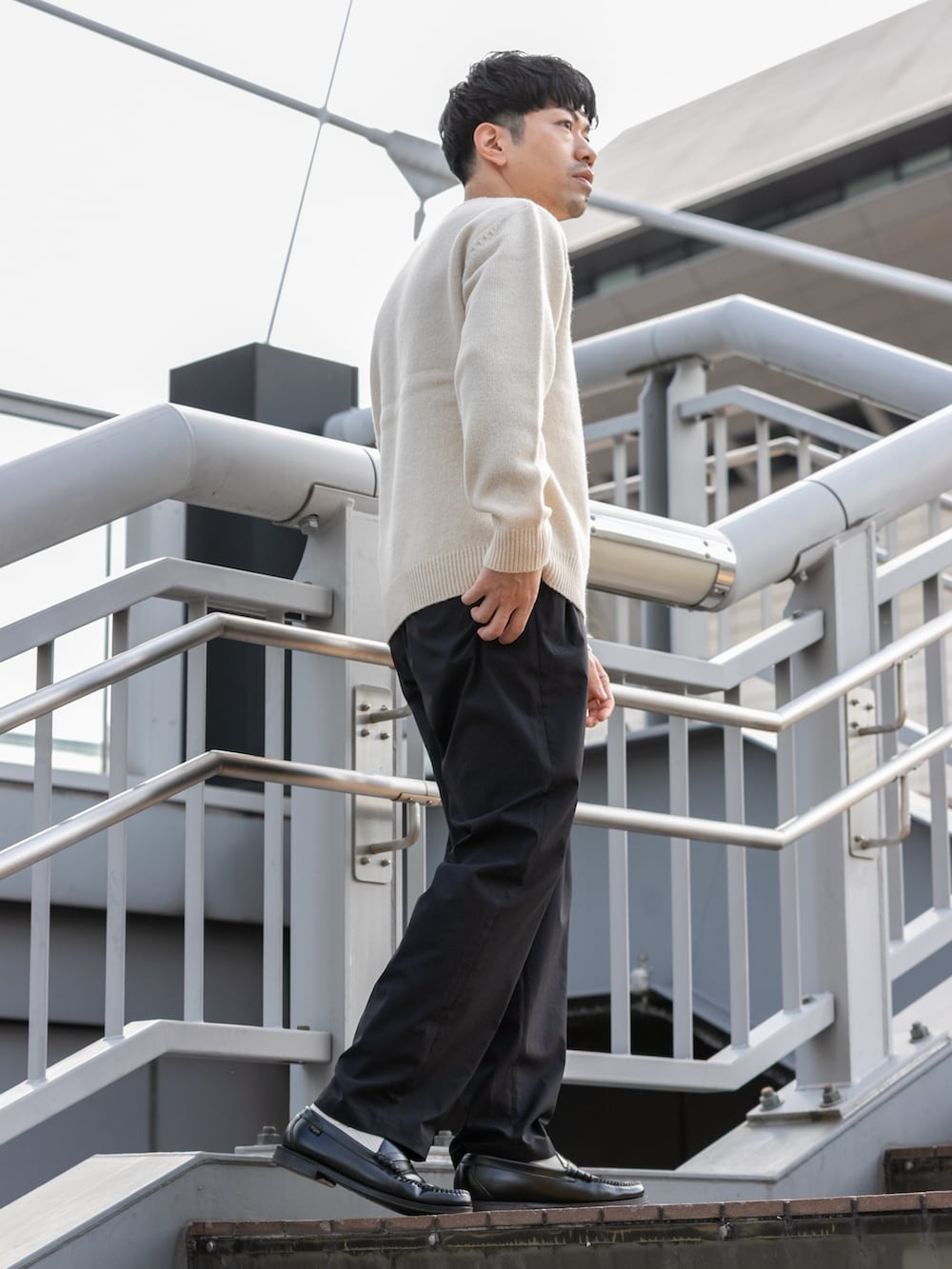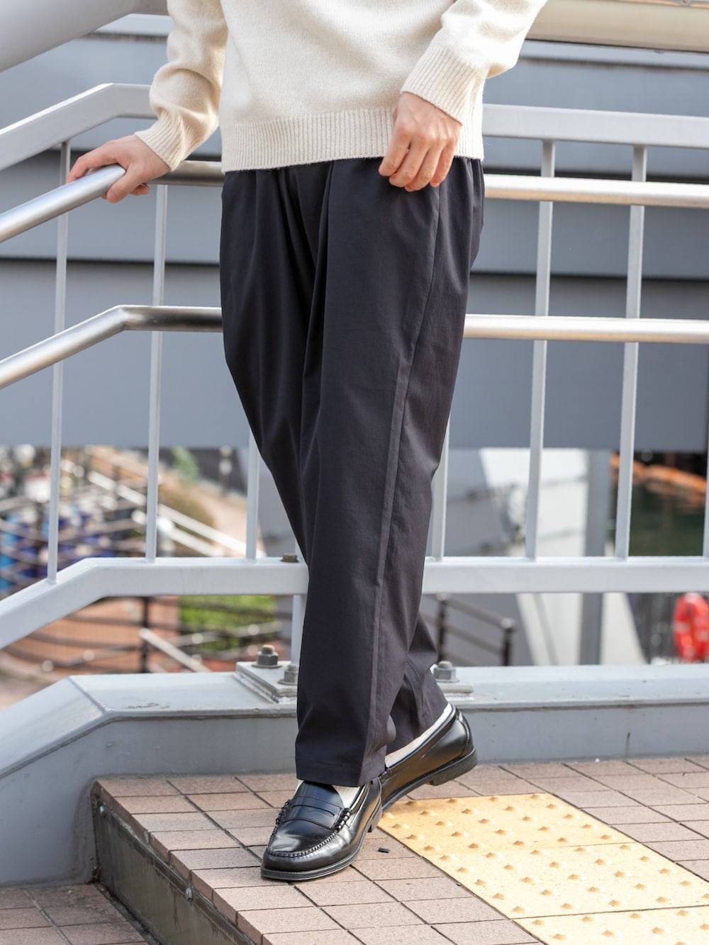 スラックスは年中使える絶妙な厚さで、部屋干し3時間乾燥という毎日着られる機能性パンツです。