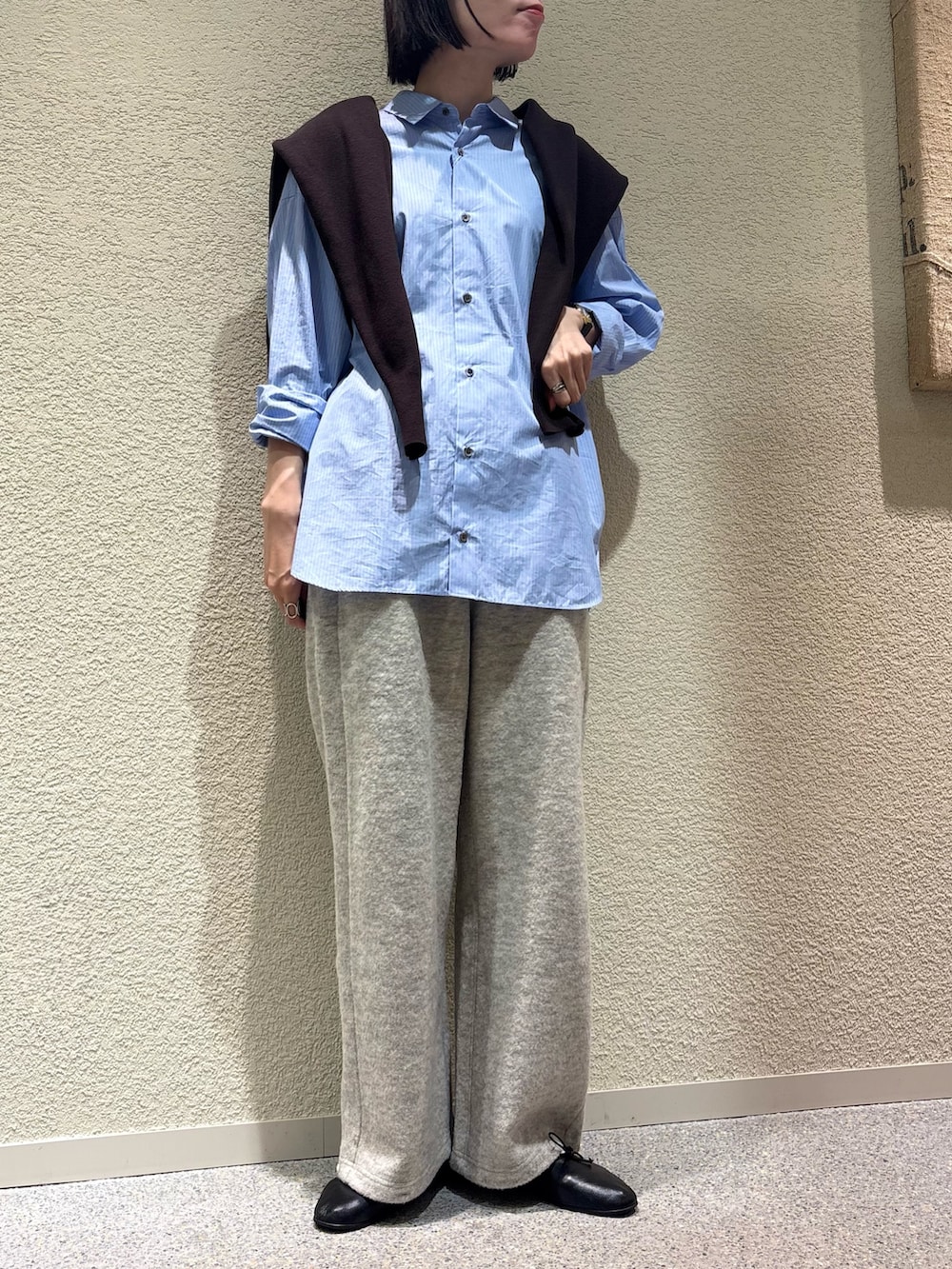 起毛感があり見た目にもあたたかいウール素材のパンツです。重さはなくとても履きやすいです。