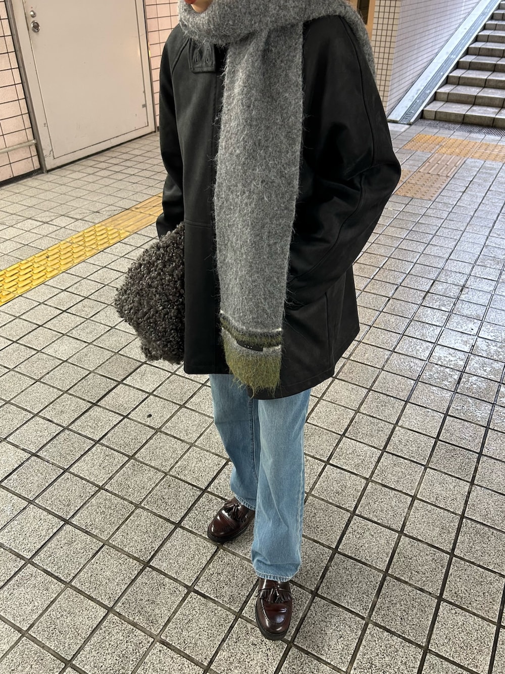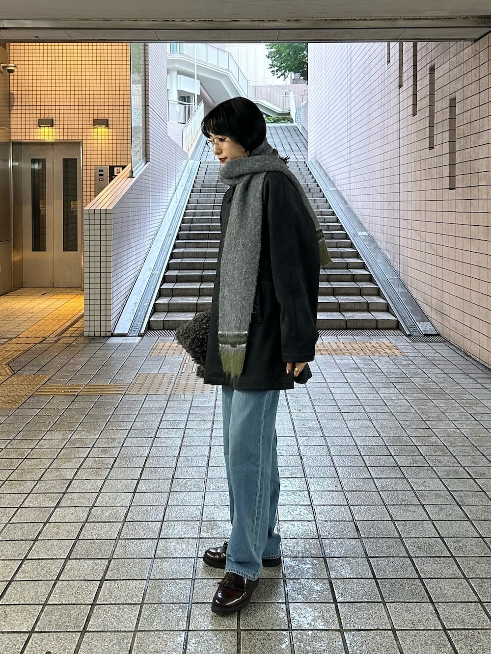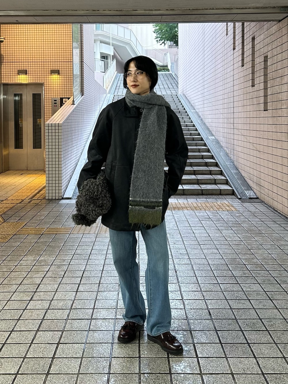 ピーチスキンカバーオールをメインに、デニムと合わせてカジュアルに着てみました。
