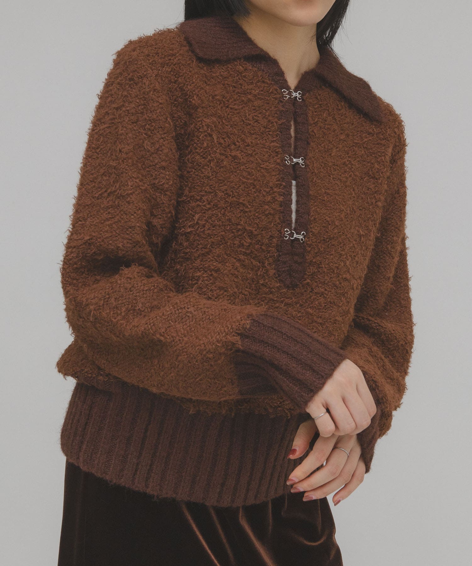 もこもこ素材のブラウンニットが主役の、秋冬らしいあたたかみのあるコーデです!