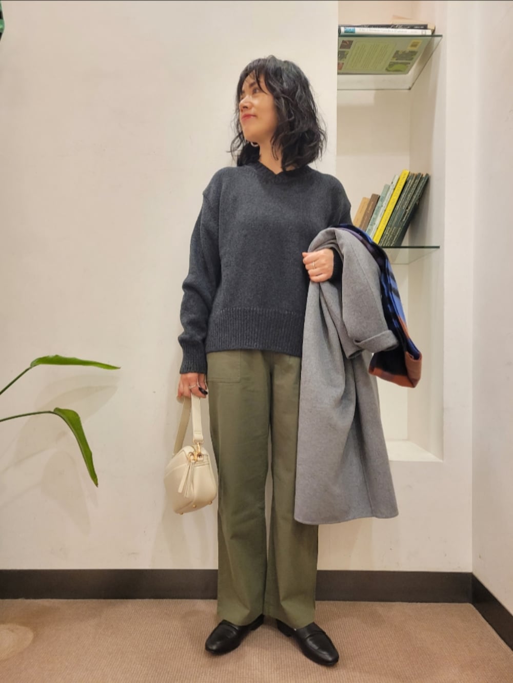 厚手のアイテムも中に着やすいです。