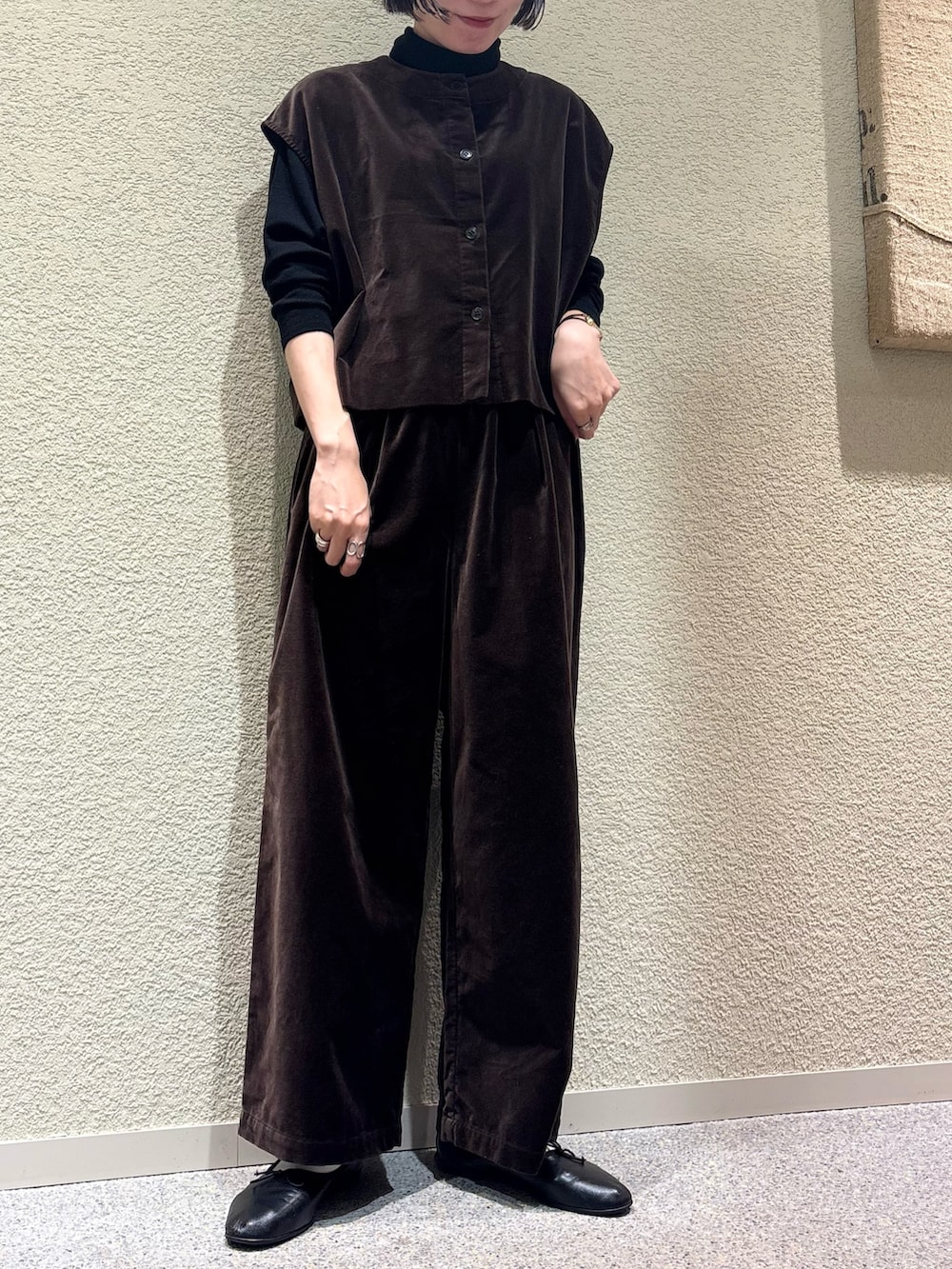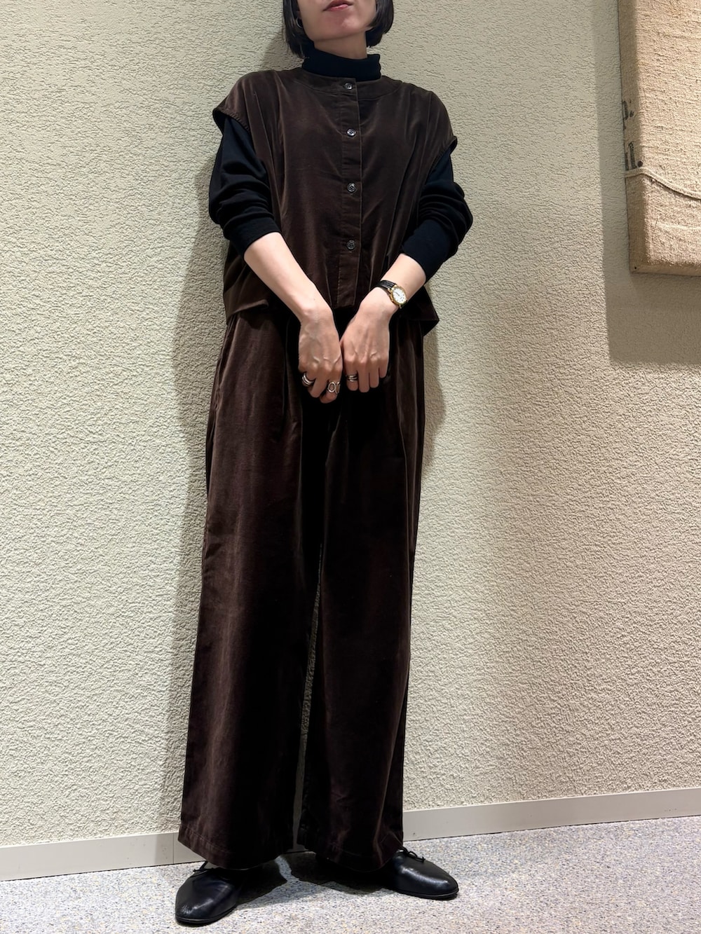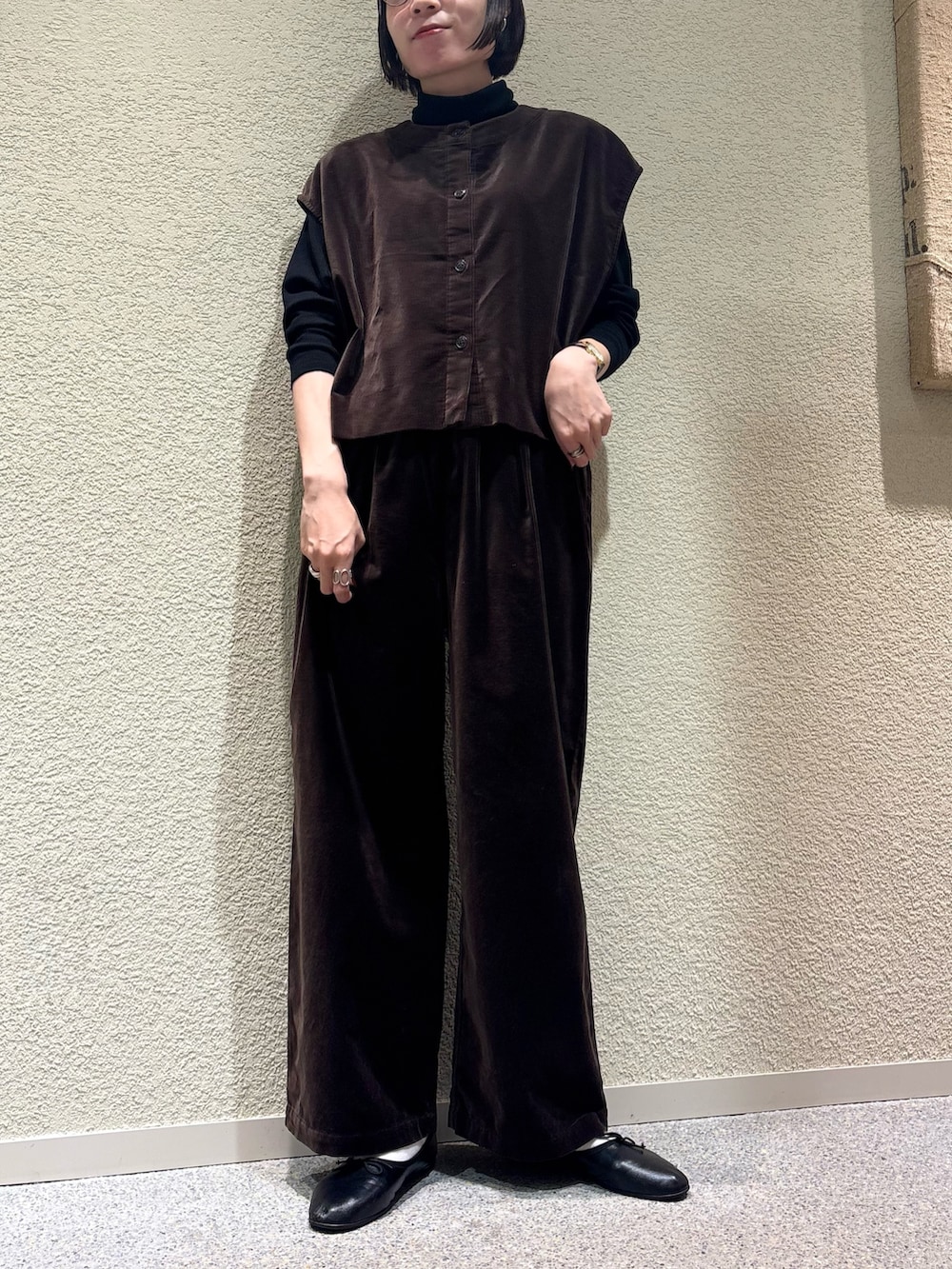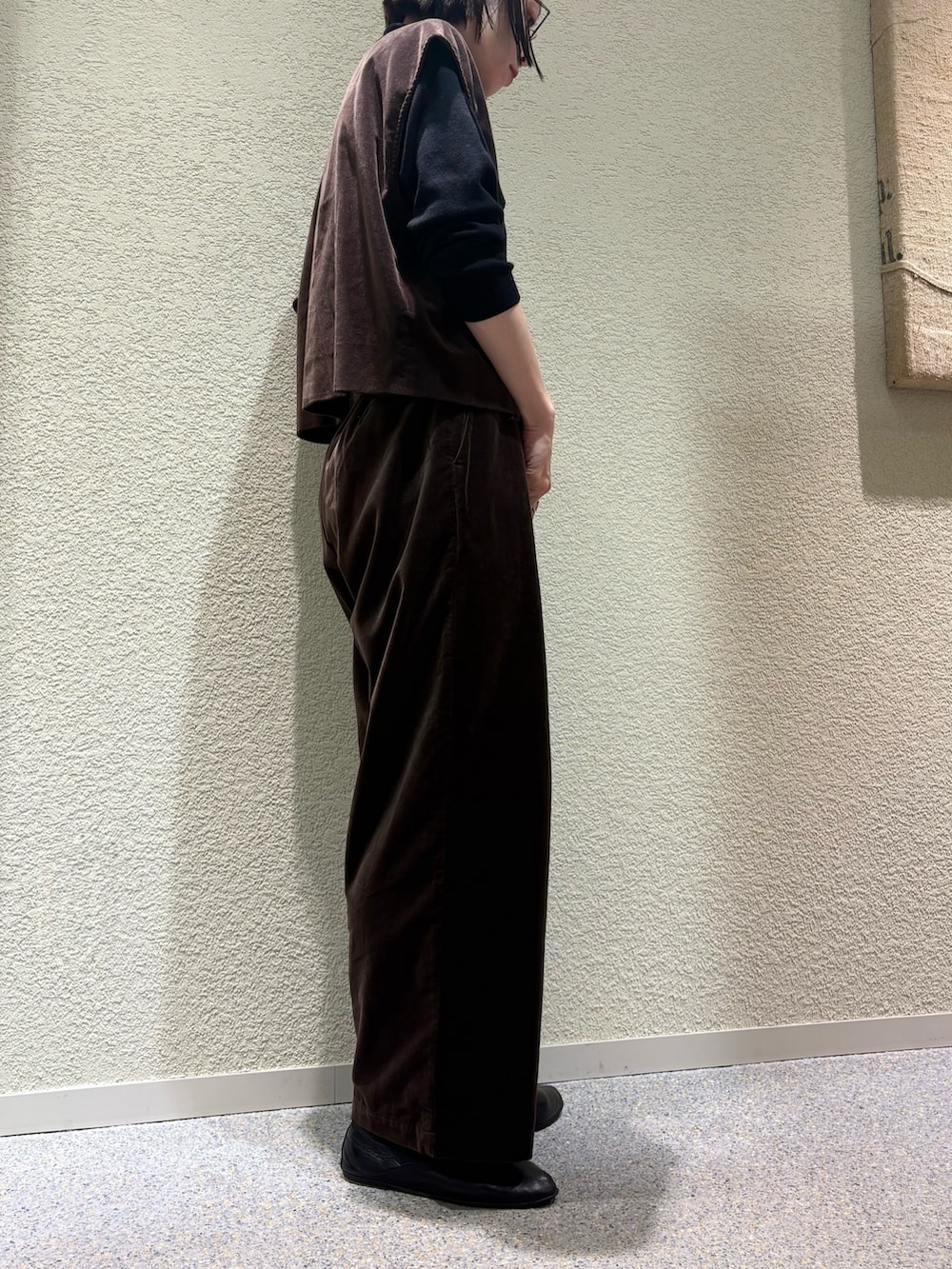 ベストと同素材で温かみのある生地感になっており、履き心地は軽くてとても快適です。
