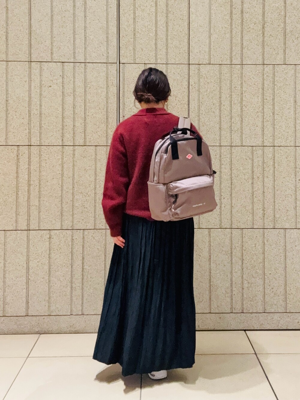 万能に着回せるランダムプリーツスカートを合わせて休日カジュアルコーデにしました。