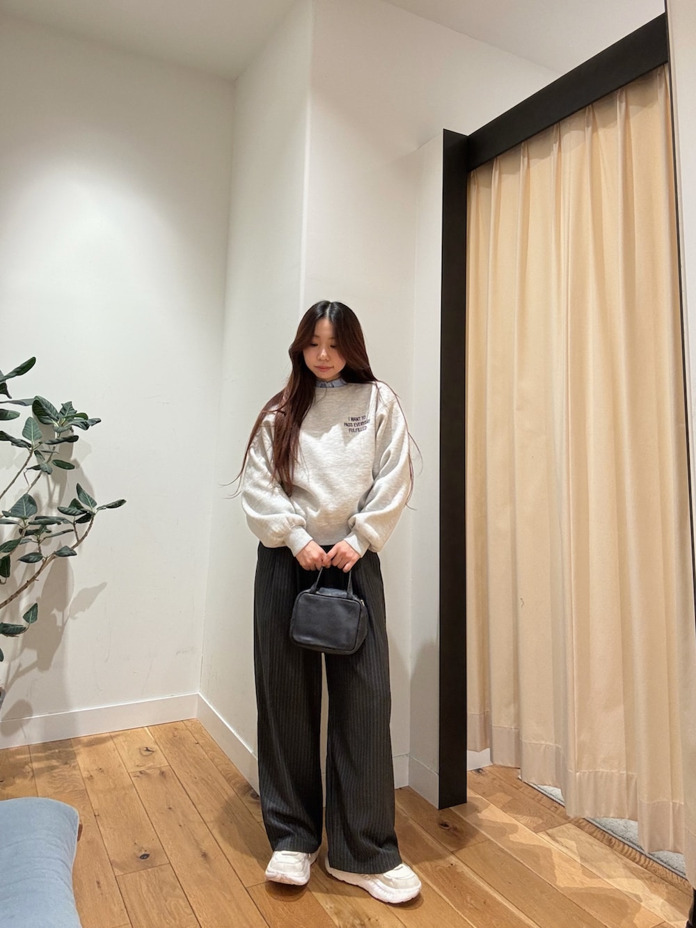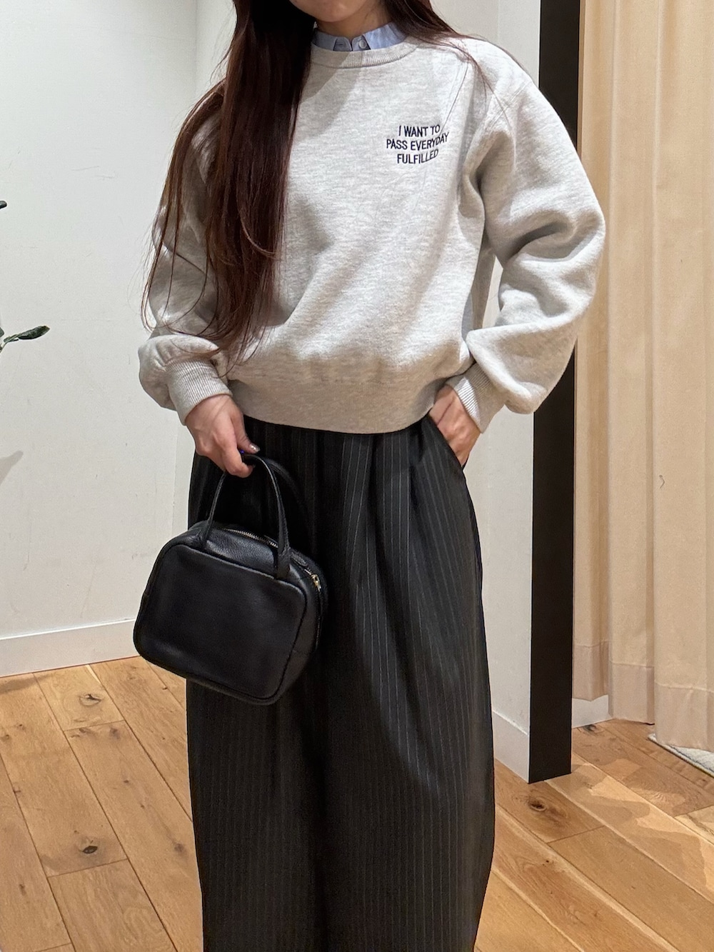 今回はURBAN RESEARCHの『ウール混タックギャザーストレートパンツ』と合わせてみました!カラー展開も5つと豊富で、またサイズも3サイズ展開しているのが嬉しいポイントです!