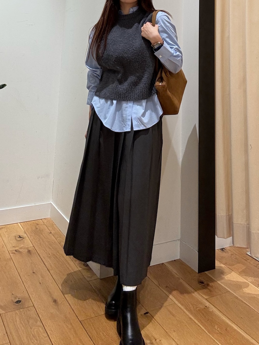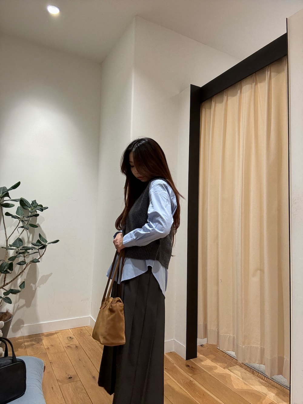 脇が広く空いているので、ボリュームのあるブラウスやシャツ、カットソーを中に着ても⭕️
