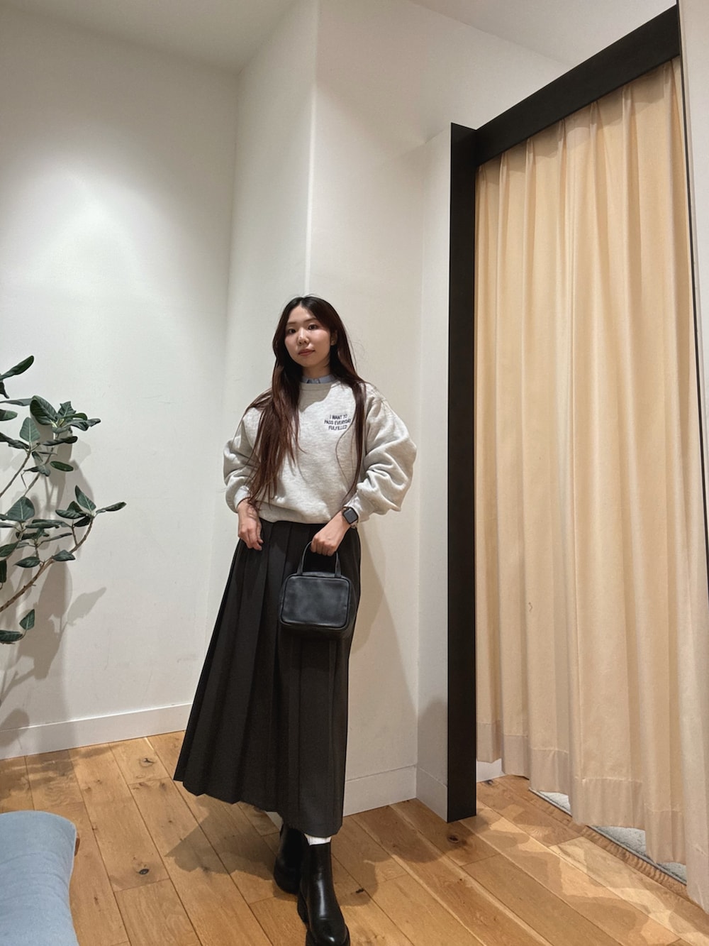 着心地が本当に良いです!中にシャツやTシャツなどのカットソーを着てもゆったりしてるのでレイヤードスタイルにおすすめなニットです✨