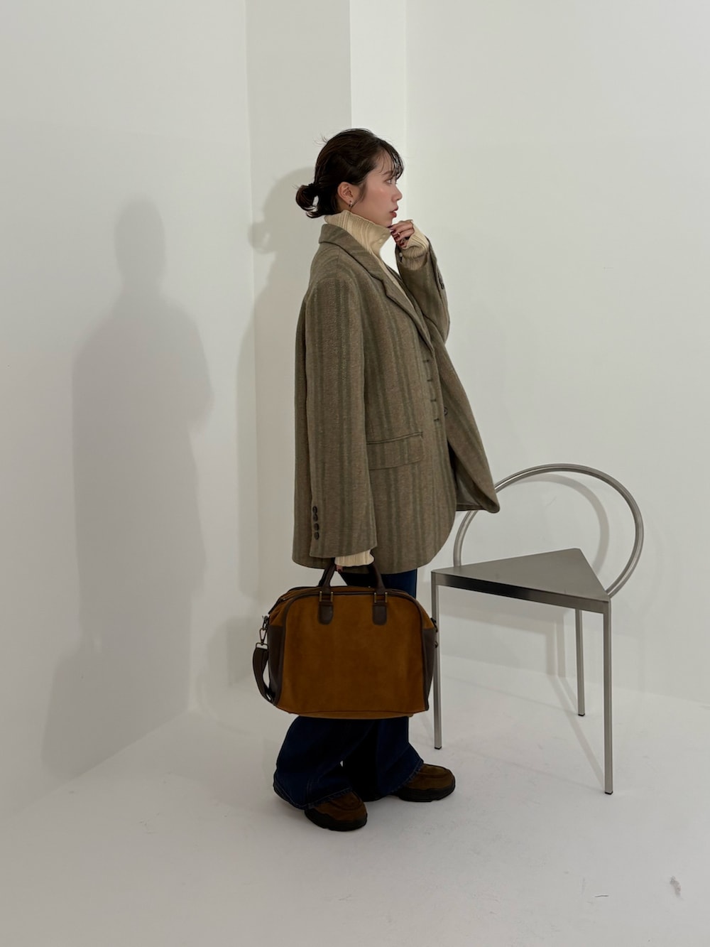 メンズライクな雰囲気に、柔らかいベージュのシャツやレトロなバッグで女性らしさも足しています🙆♀️