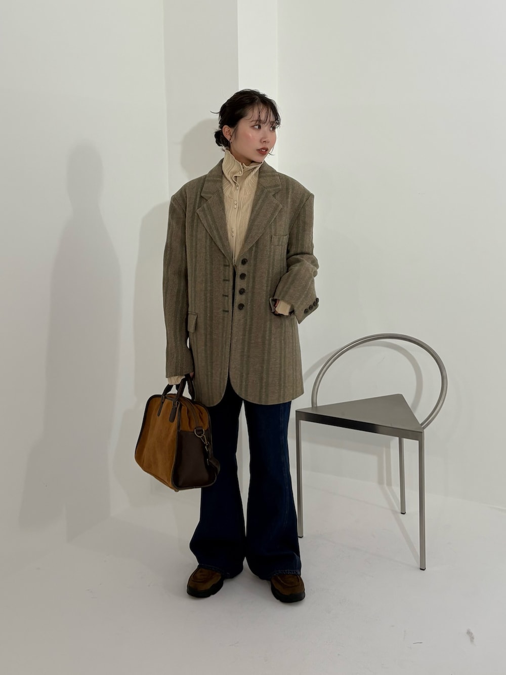 大きめジャケットのシルエットが今っぽく、こなれ感のあるジャケットスタイルになるのでオススメです✨