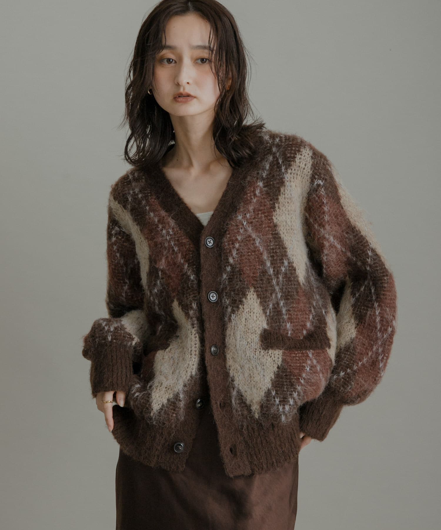 アーガイルVネックカーディガン