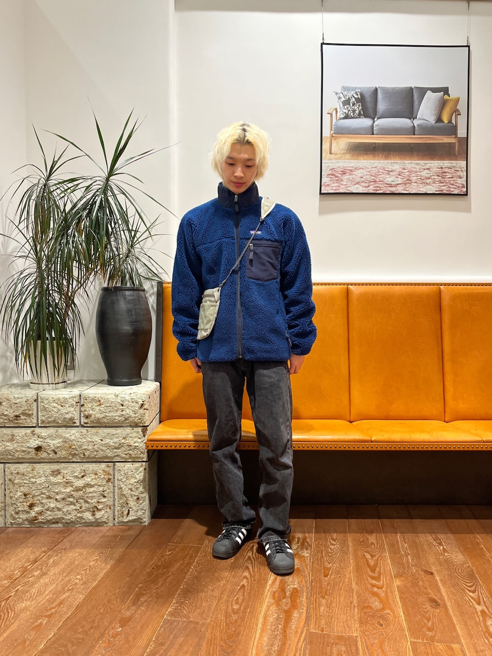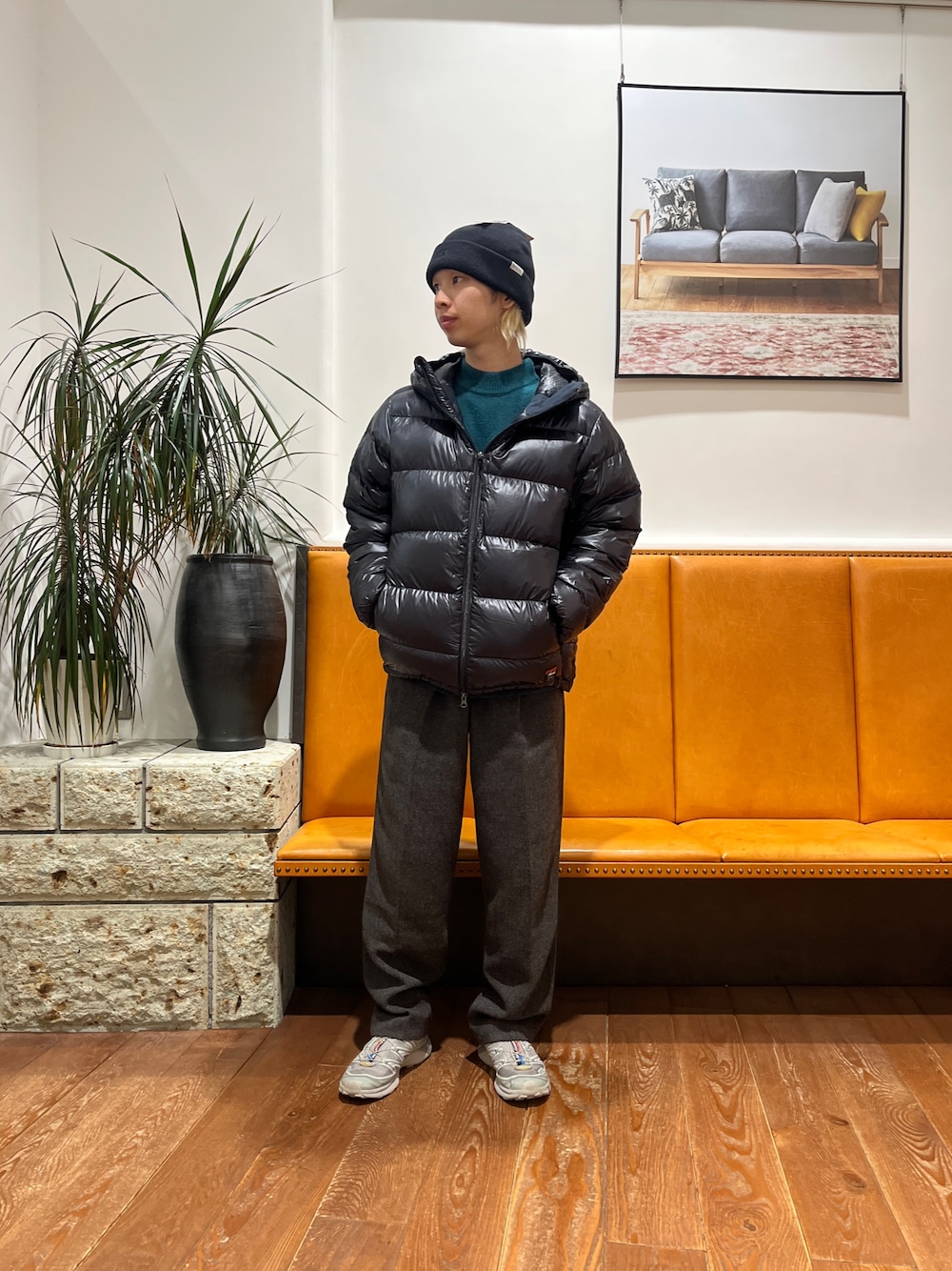 200ニットの新色に完声パンツでシンプルにニットで色味をつけたコーディネートにしました!シューズはSUBUでダルぽい感じにしています