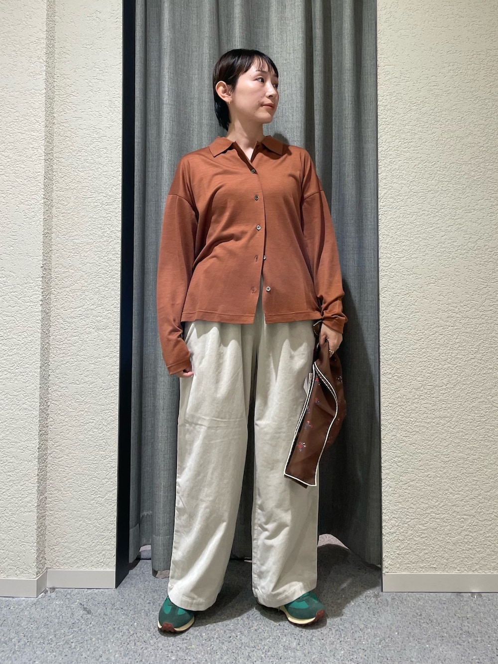 高級感のある優しい艶と襟付きのシャツデザインがゆるっとしたサイズ感ながらも品のあるきちんと感があります!