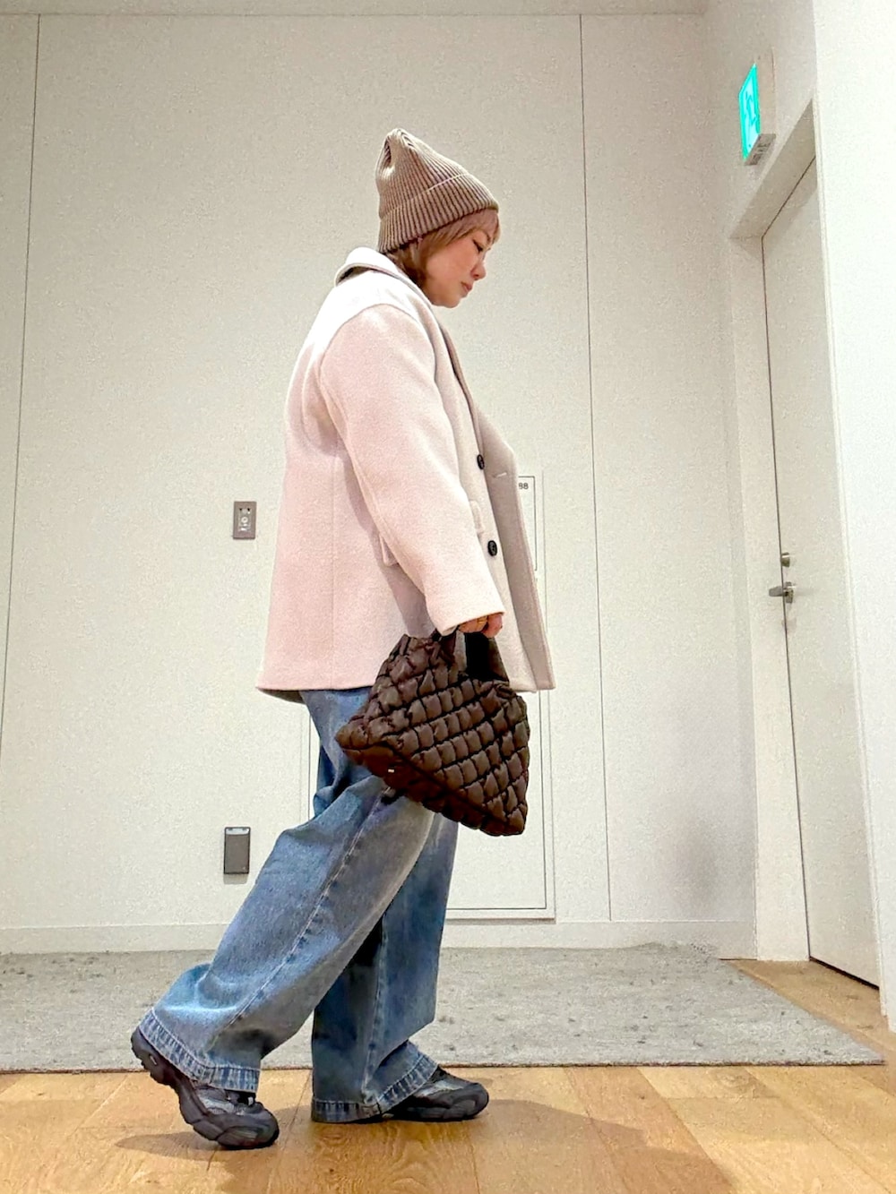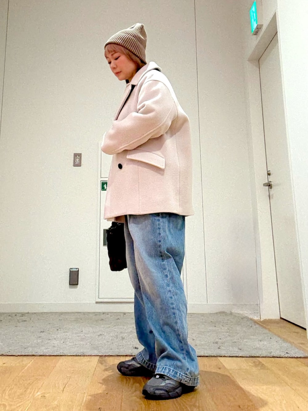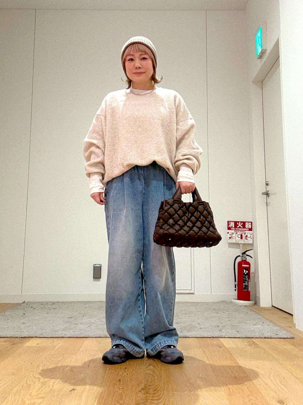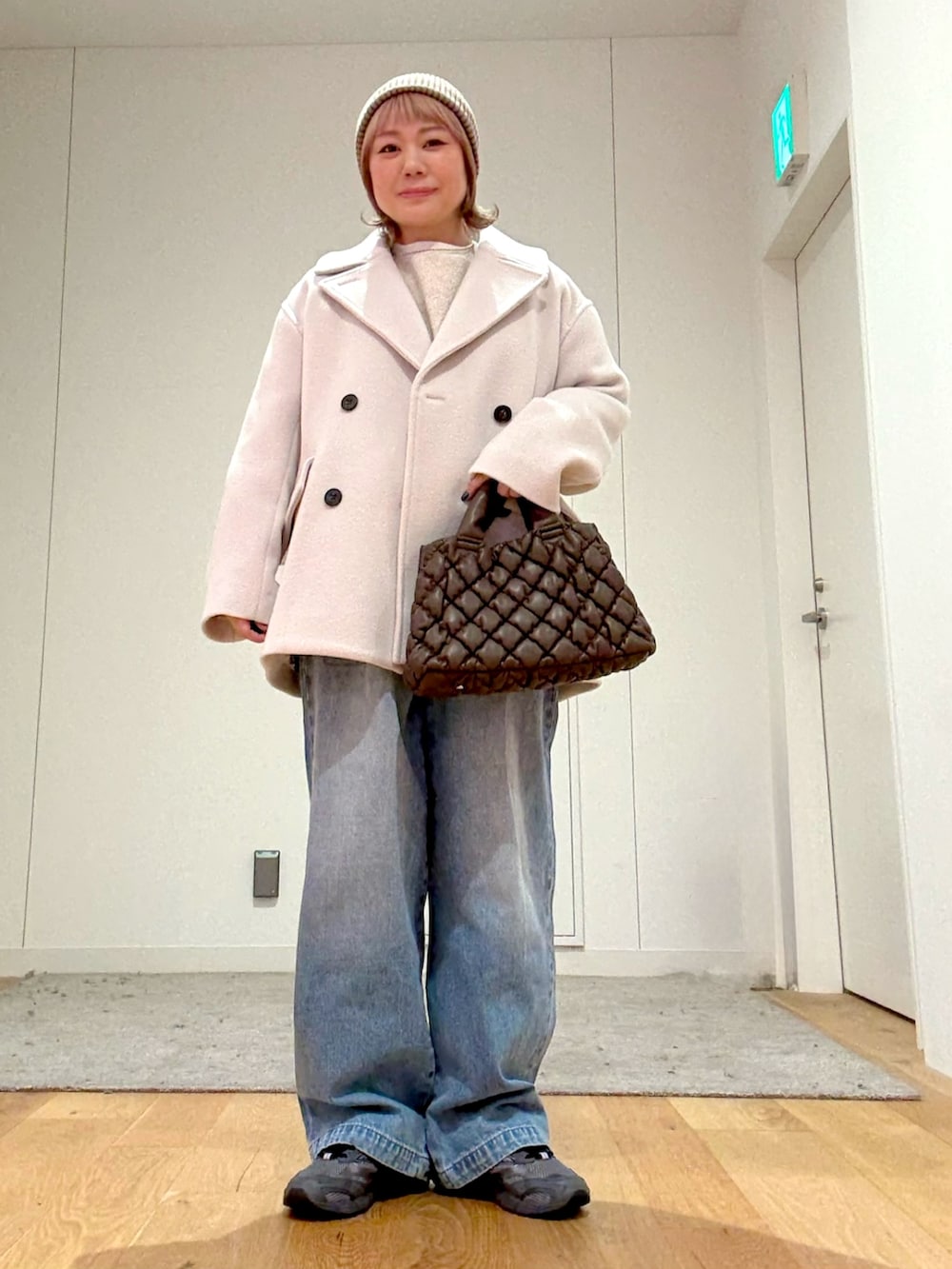かぐれのお気に入りトップスコーデです!買ってよかったNo. 1アイテムです!楽ちん、可愛い、着心地良しなので是非お試しいただきたいです!デニムもウエストゴムで楽ちんなのにシルエットがキレイなパンツでおすすめです!カジュアルすぎないようにROSSOのコートと合わせました!こちらも着心地良しのアウターです。