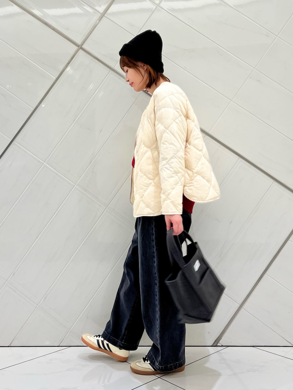 ウエストゴムで楽な穿き心地のデニムパンツは