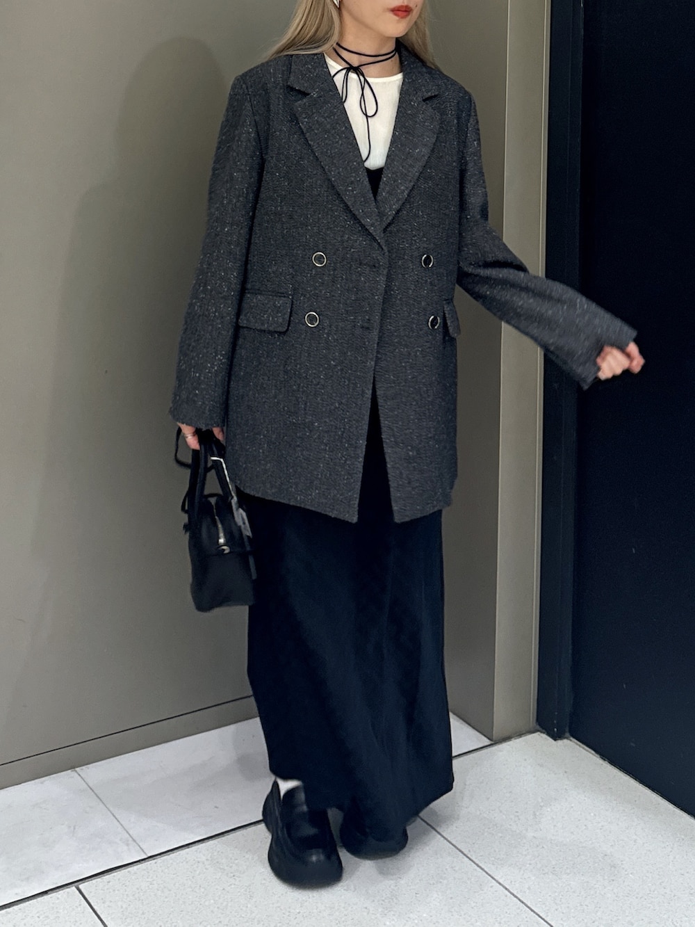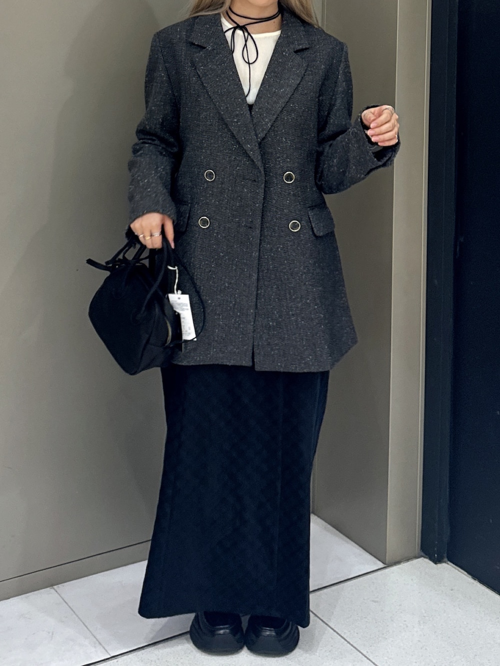 ややレトロ感もあるジャケットなので、なかの素材もおもめで合わせてみました☃️