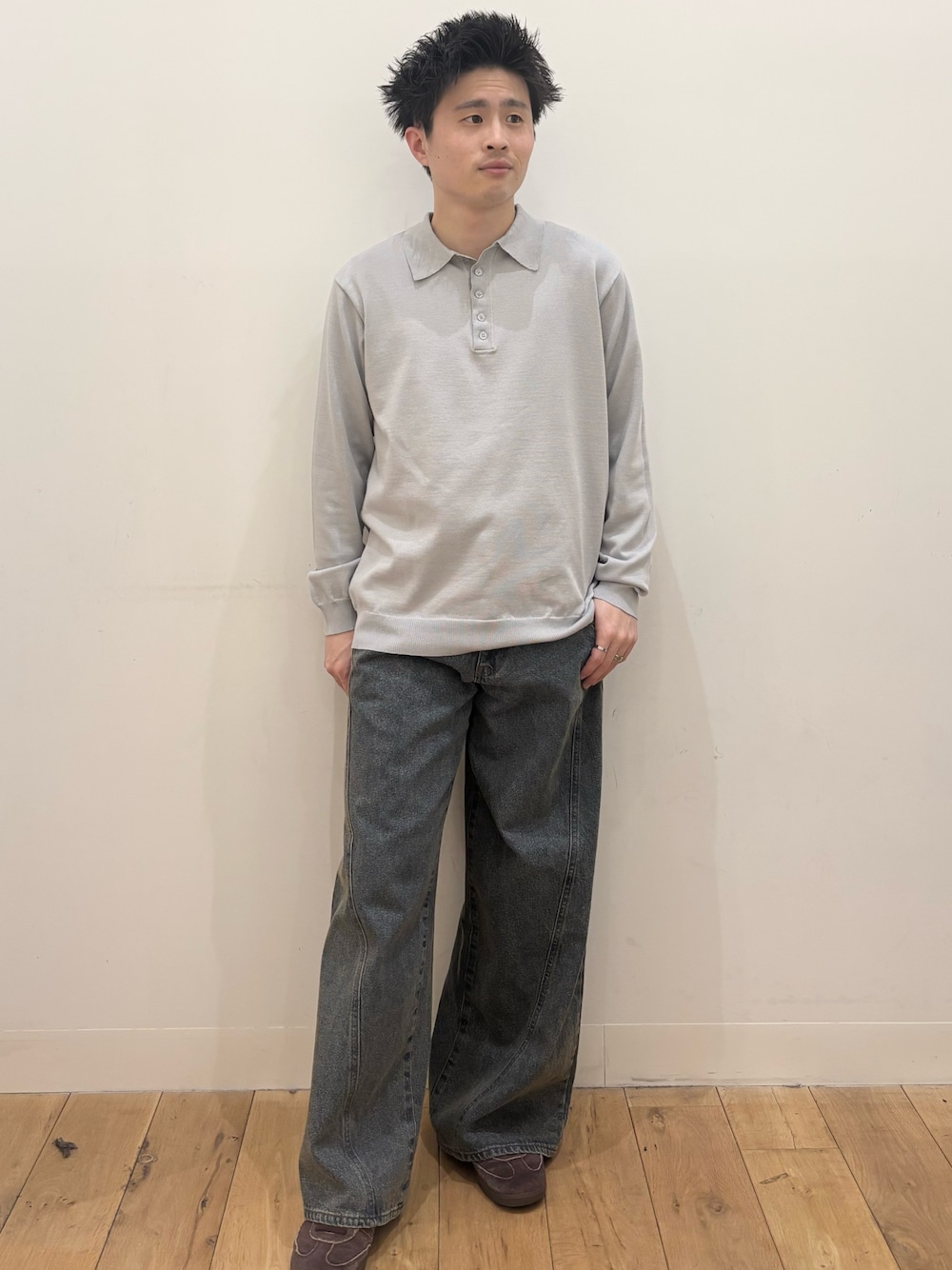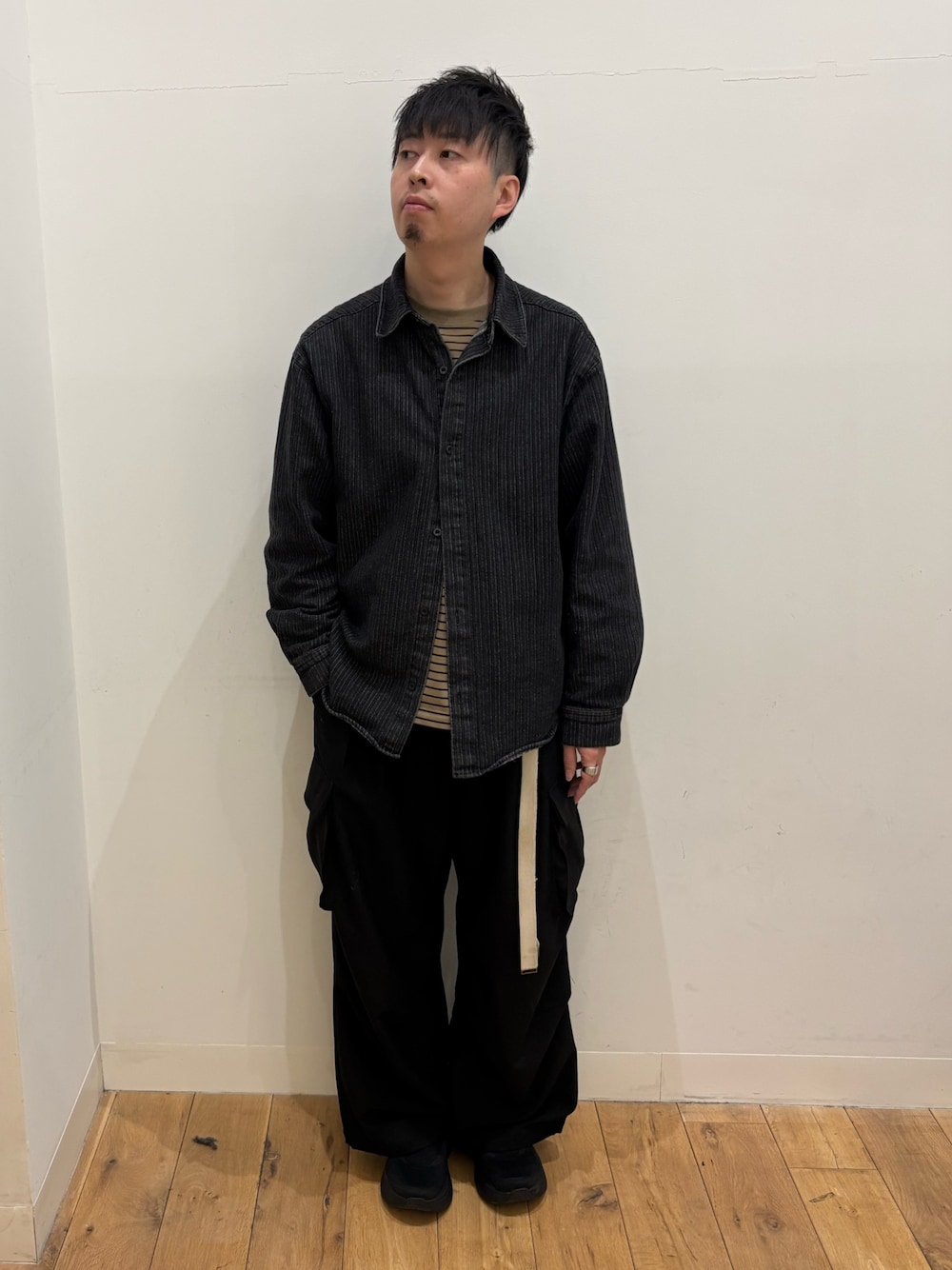 パンツにストライプを合わせることで、全体がシンプルすぎないスタイリングに仕上げています‼︎