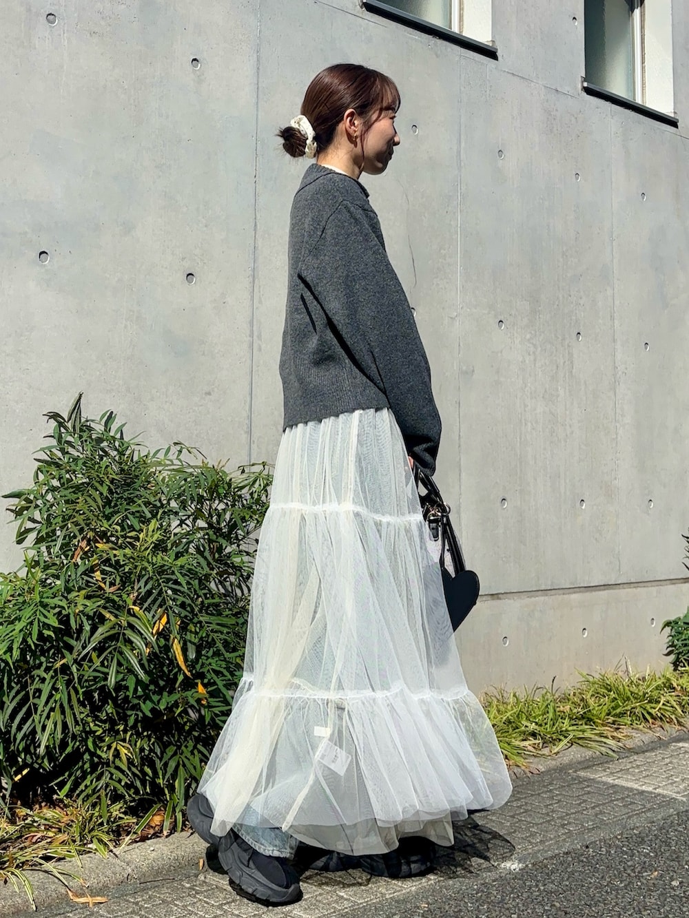 チュールスカートは裏表2WAYで着用していただけてデニムなどの上から重ねて着るだけで