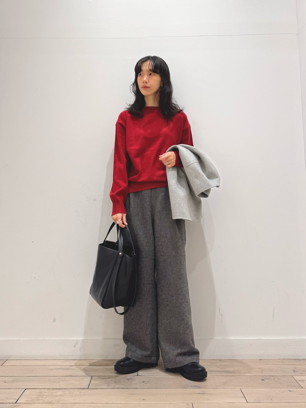 少しだけトーンが暗めの赤なので、普段あまり着ない方も是非1度お試しください!