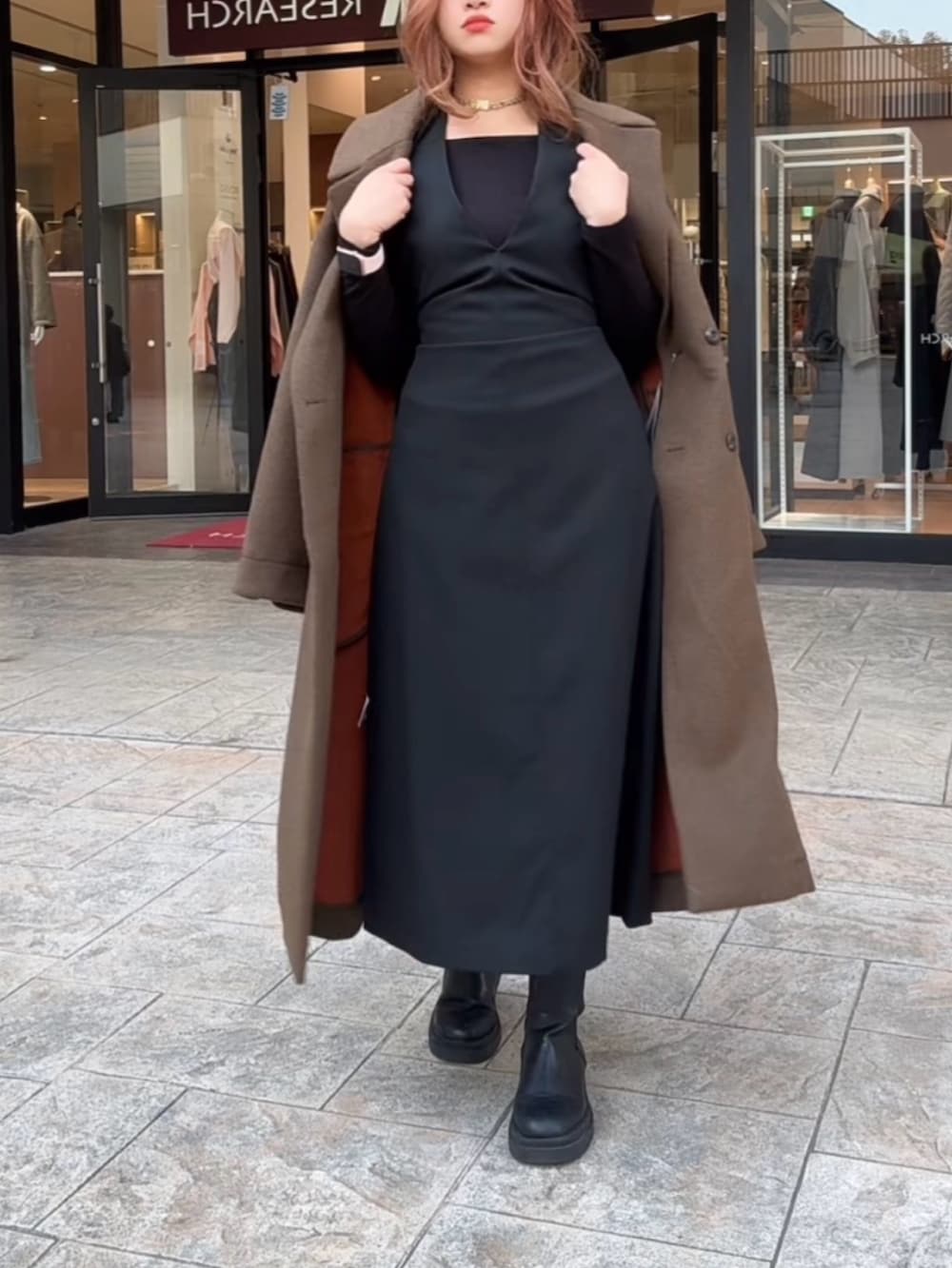ふんわりと揺れるワンピースをトレンチで引き締めて、女性らしさとクラシック感を演出✨