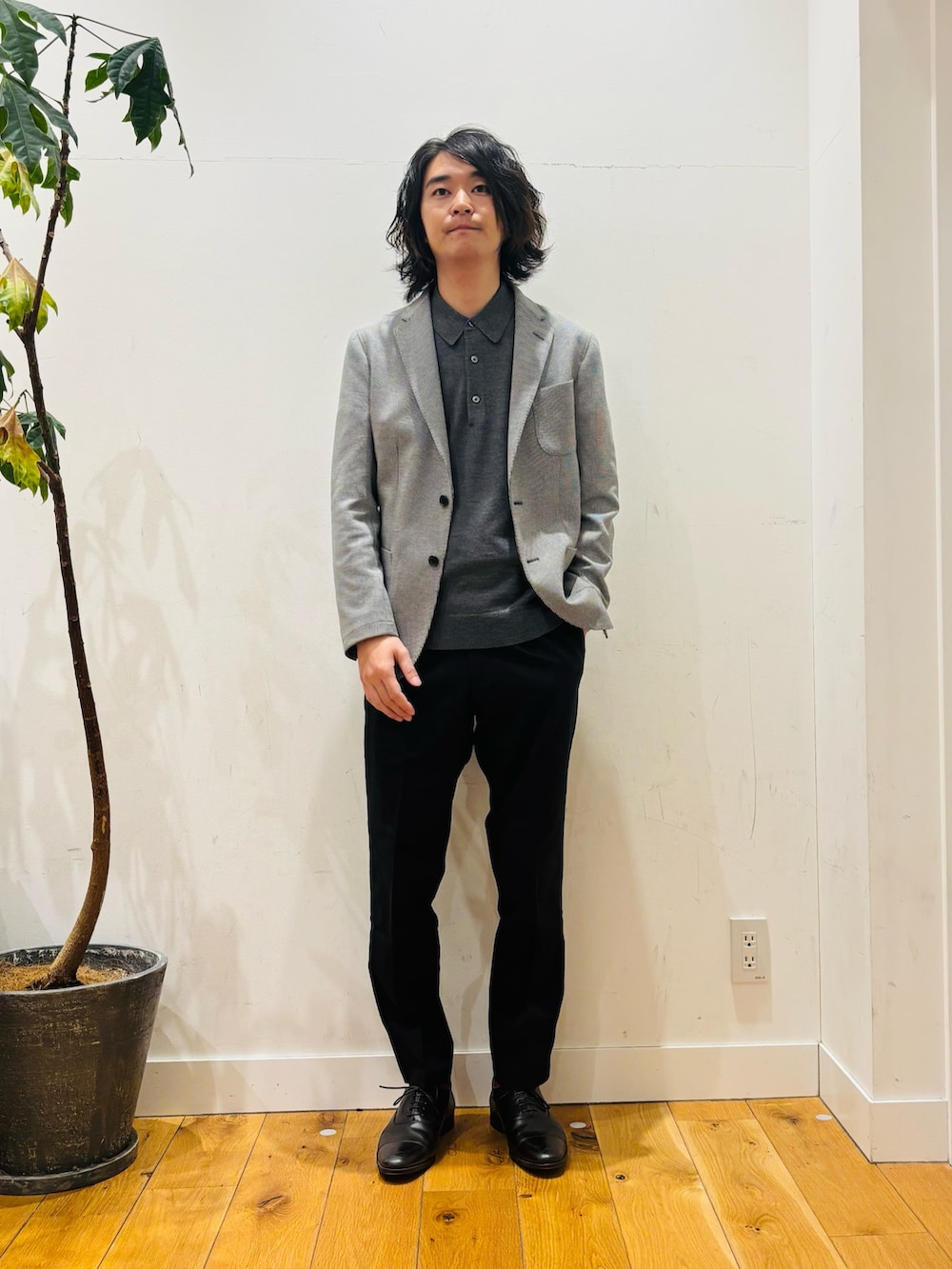 ジャケットでのシャツスタイルも良いですか少しカジュアル感が出せるニット素材はオススメです。