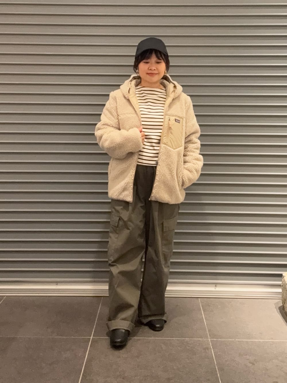 フォーク&スプーンのボーダーTで週末お出かけコーデにしました。ボア素材×ボーダー、柔らかい印象で着れて秋冬コーデにオススメです。
