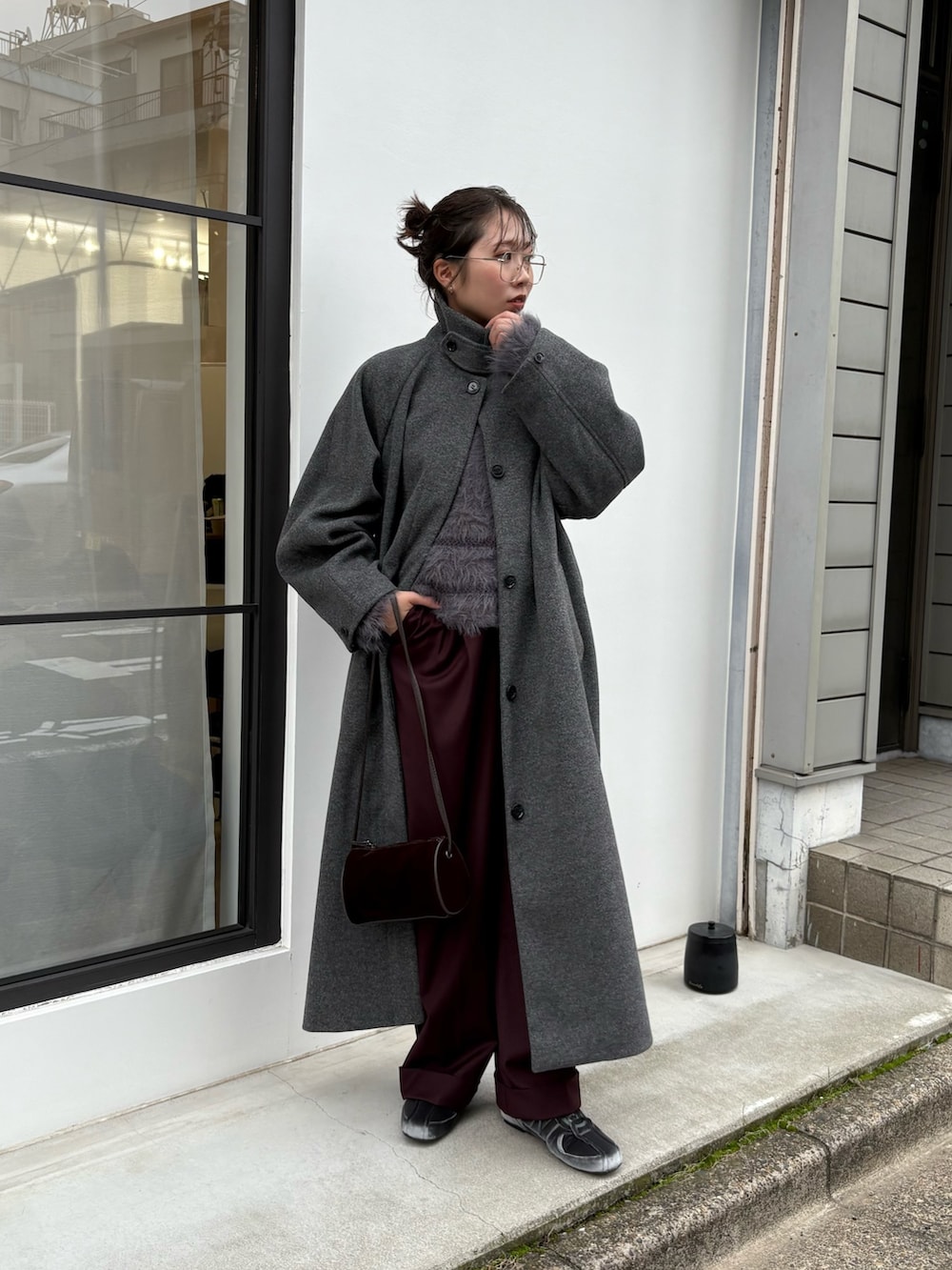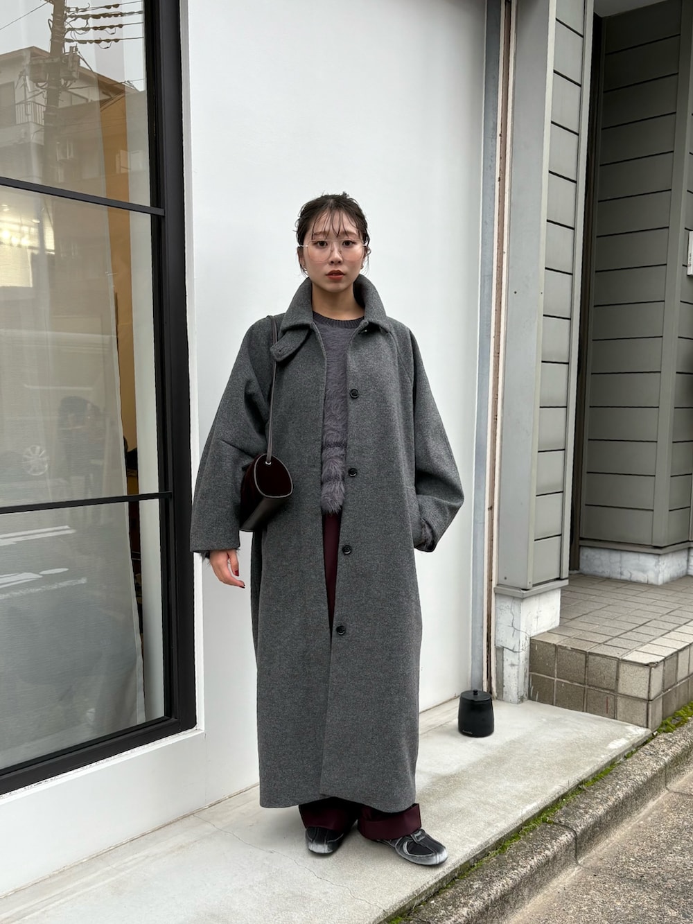 ロングのグレーコートを主役に、インナーも同系色で統一しています!