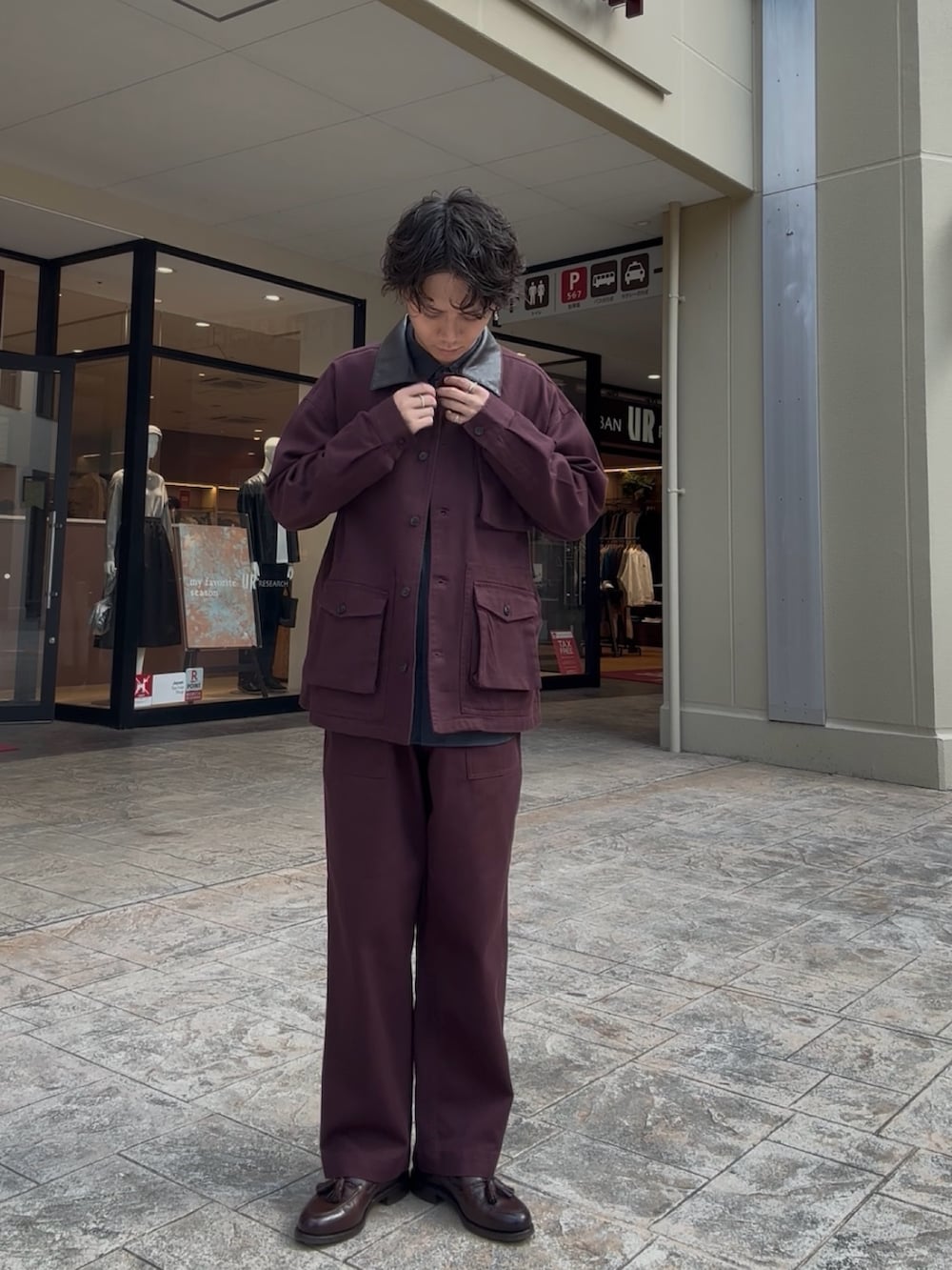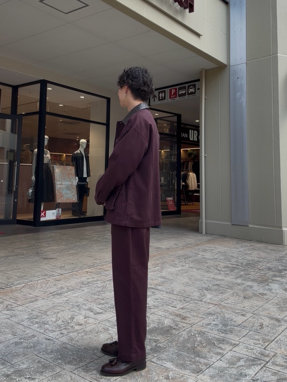 しかも色はバーガンディと一際目立つ色なので、他と被りたくない、服選びに困りたくない、という人は必見のセットアップです!!