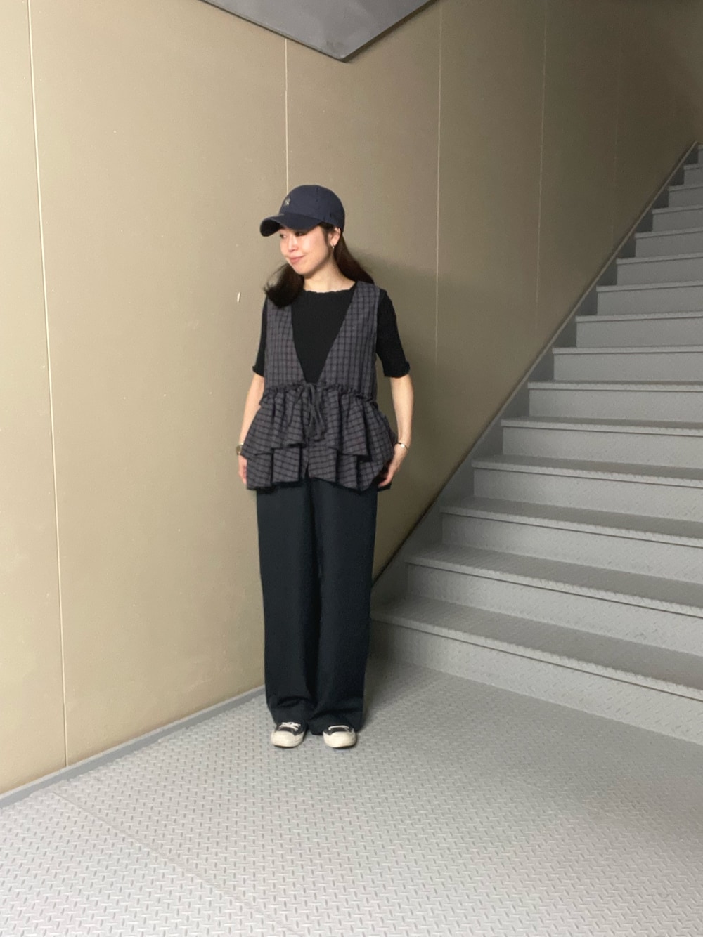 無駄のない色使いとゆるめのシルエットが、都会的でリラックス感のある印象を与えています。