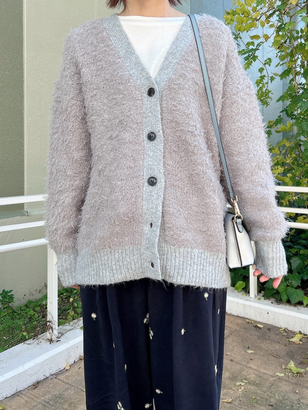 程よいVネックが顔周りをすっきり見せて、ラフになりすぎないのがポイント。