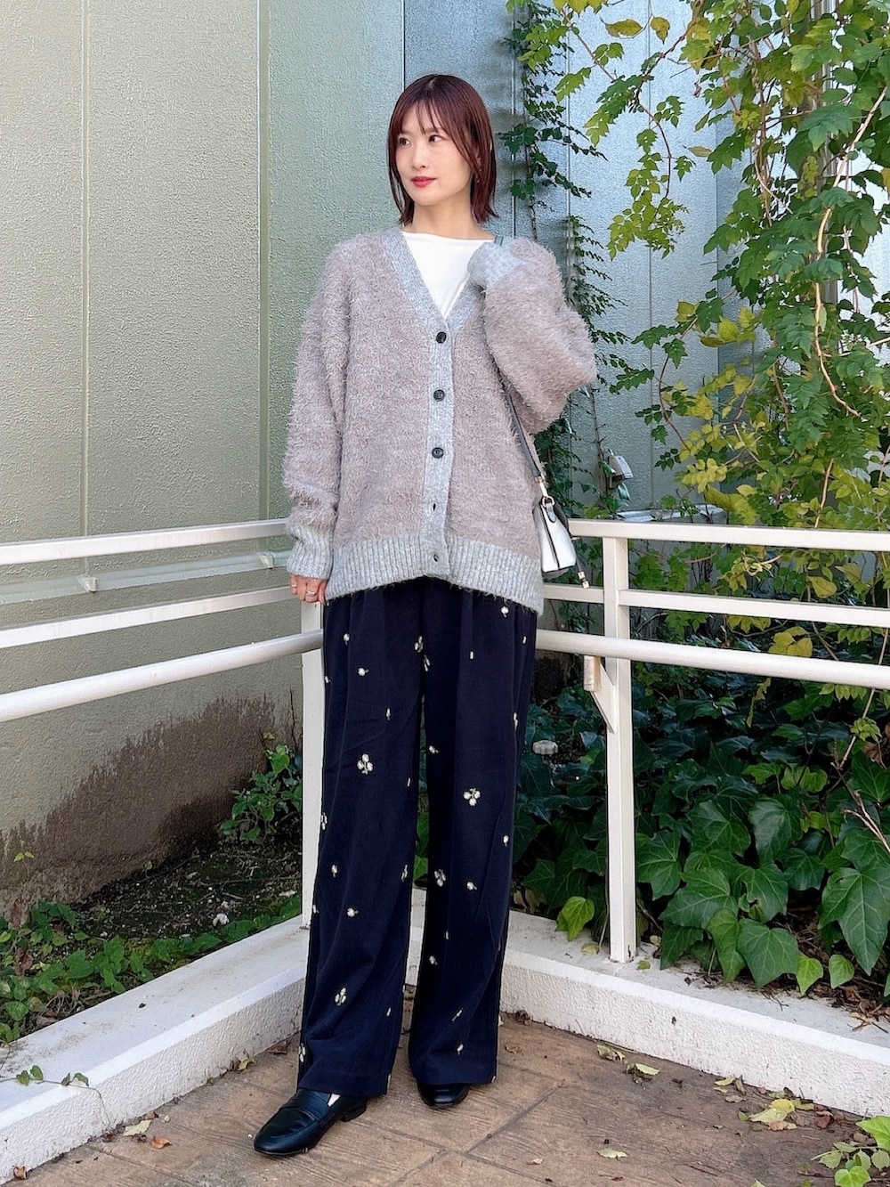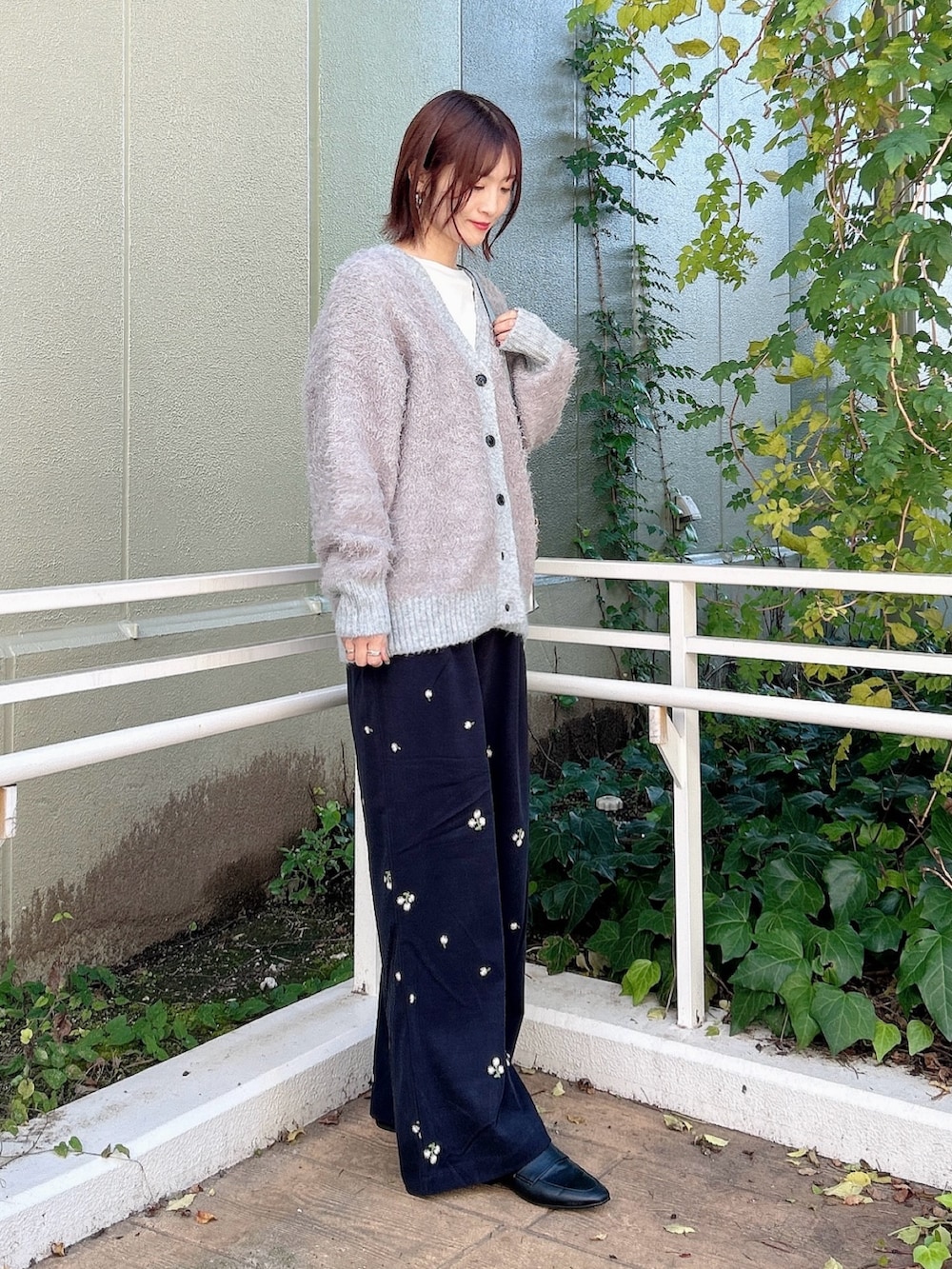✔︎ さりげないお花の刺繍がコーデに華やぎをプラスしてくれるワイドパンツ。
